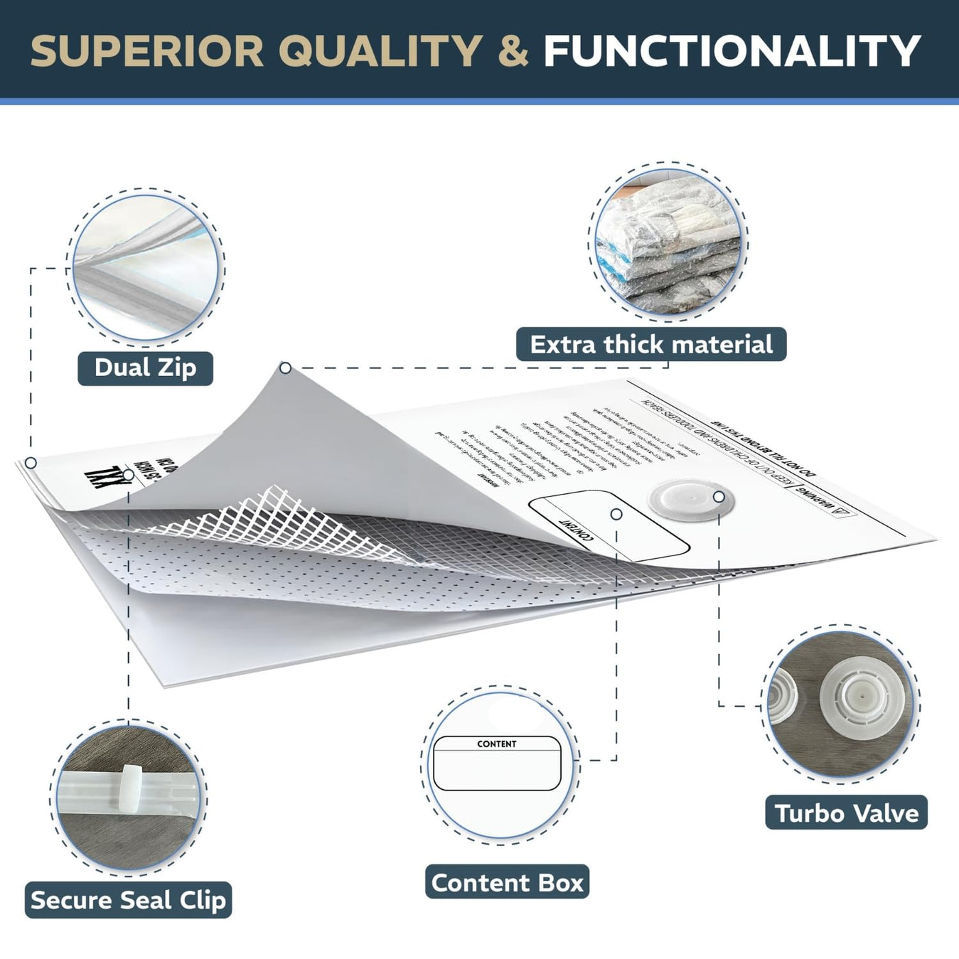 - Q: How do I use the vacuum storage bags? A: To use the vacuum storage bags, simply place your items inside, seal the bag with the double-zip closure, and vacuum out the air through the triple-seal turbo valve.