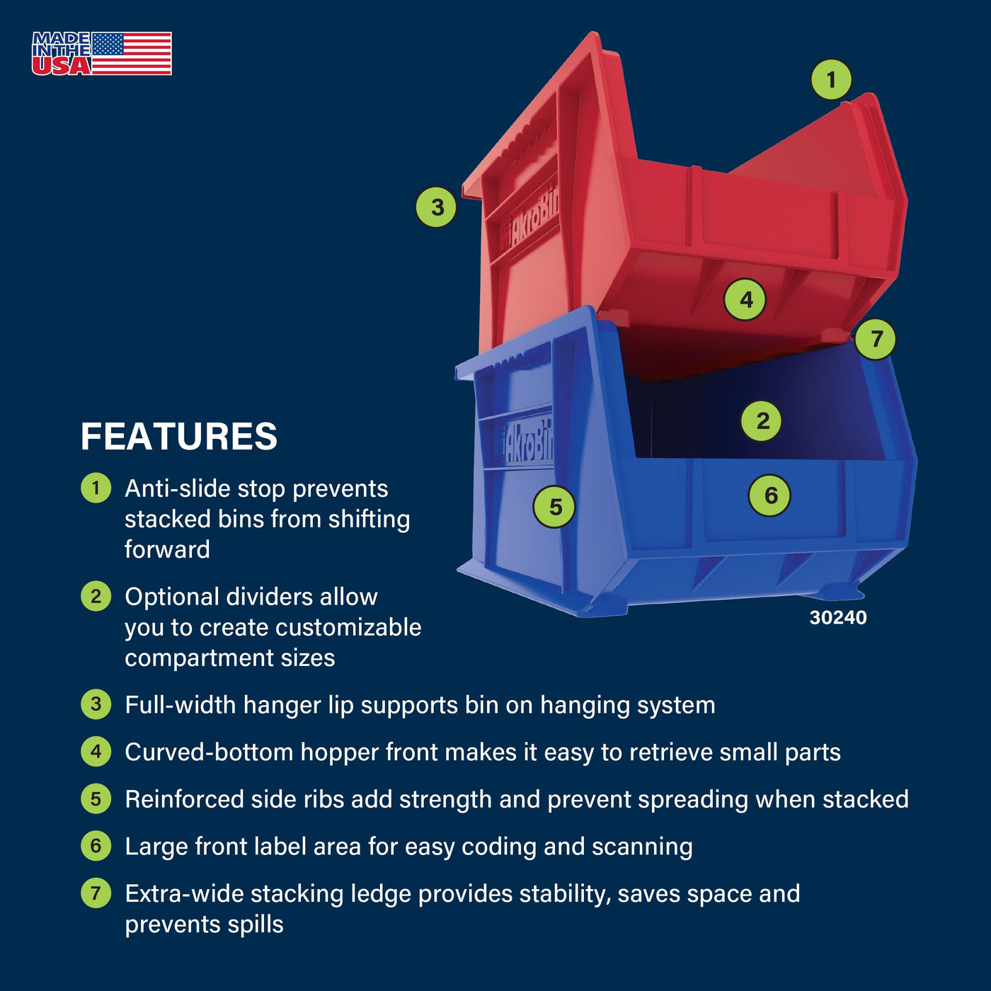 - Q: Where are AkroBins manufactured? A: The AkroBins are proudly made in the USA.