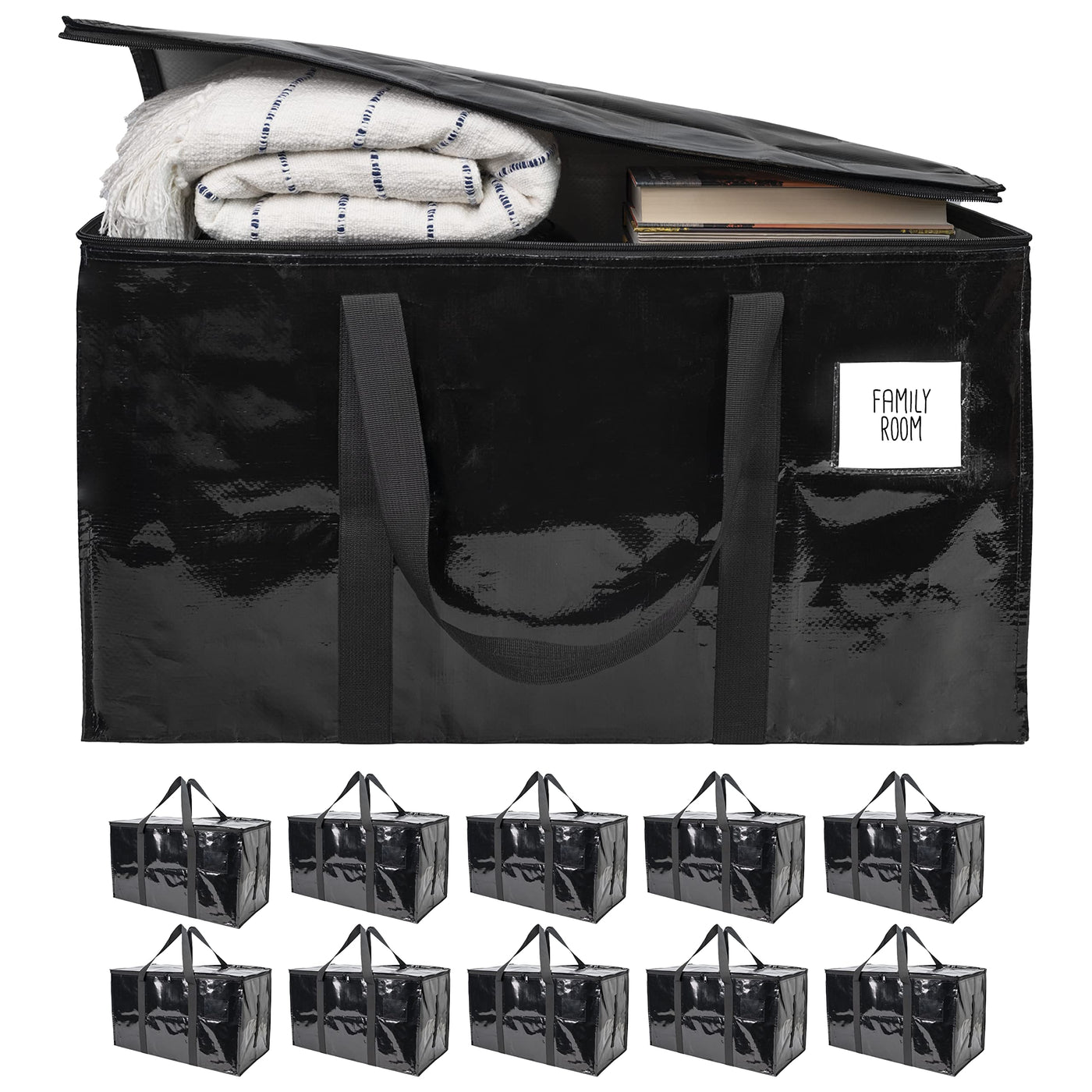 BAG-THAT! 10 Black Moving Bags Extra Large Heavy Duty Storage Bags Zippered Top Handles Wrap Bag Totes For Storage Packing Bags Moving Supplies Packing Supplies for Moving Moving Boxes Plastic Tote