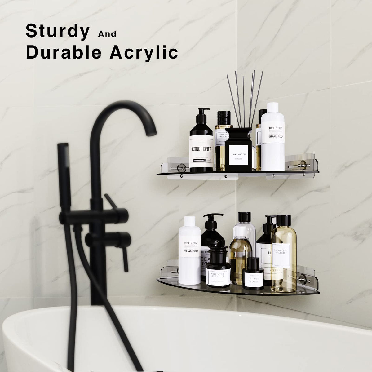 Bakzon Acrylic Corner Shower Shelves, 2 Pack Adhesive Shower Caddy Organizer For Tile Walls, Wall Mounted Clear Bathroom Shower