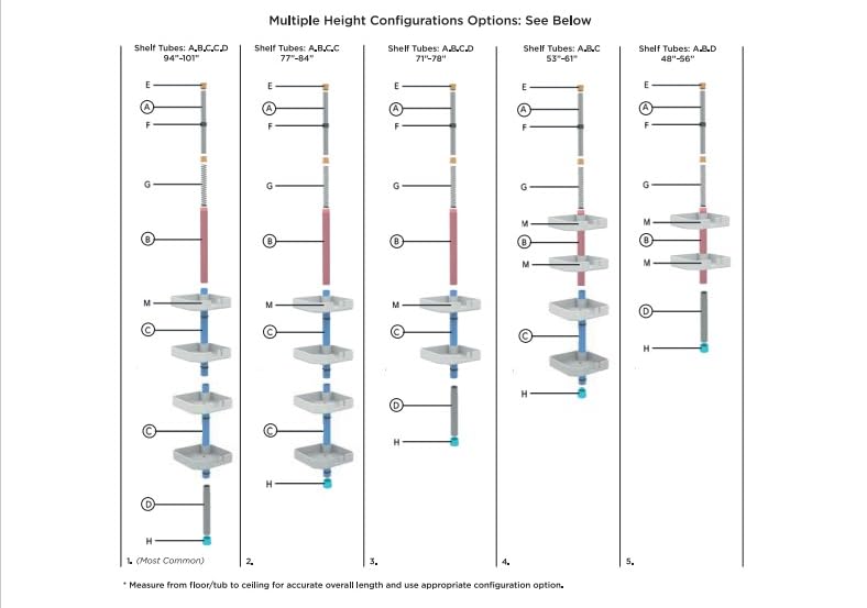 • Q: Can the height of the caddy be adjusted? A: Absolutely! The height of the shower caddy can be adjusted to any height between 48" and 101" to fit your specific shower or bathtub.