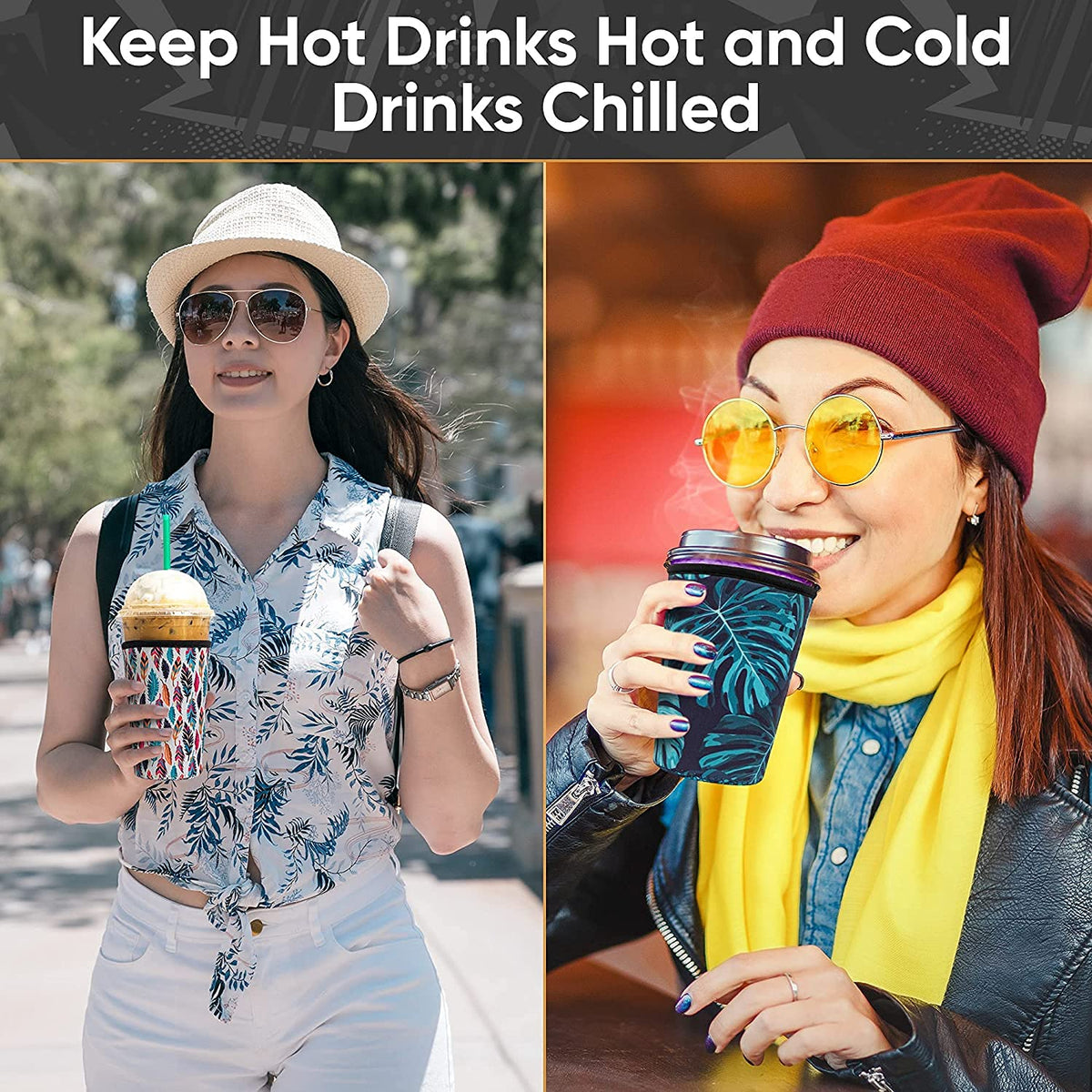 - Q: How do these sleeves help with condensation? A: The neoprene material helps reduce condensation, keeping your hands dry while your drink stays cooler or hot.