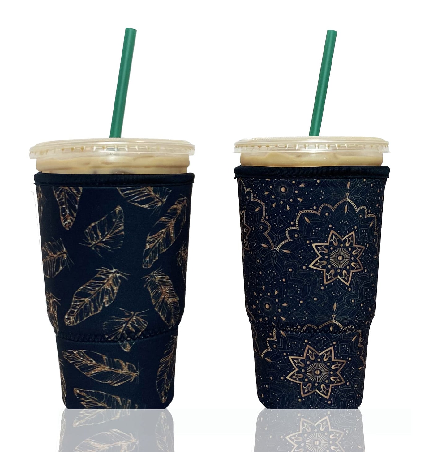 Baxendale And Co Reusable Neoprene Insulator Sleeves For Large Sized Iced Coffee And Cold Drink Cups (2 Pk Large 32Oz, Gold/Blac