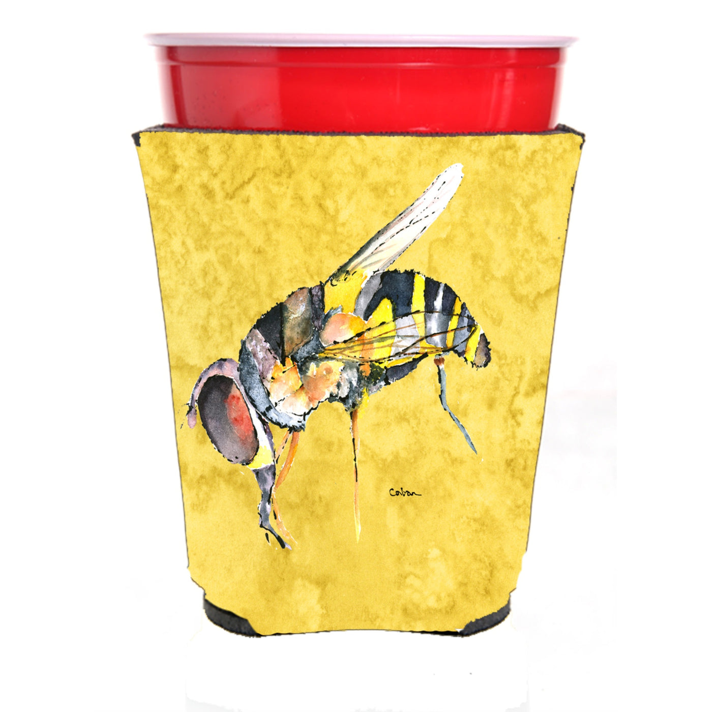 Bee on Yellow Red Solo Cup Beverage Insulator Hugger