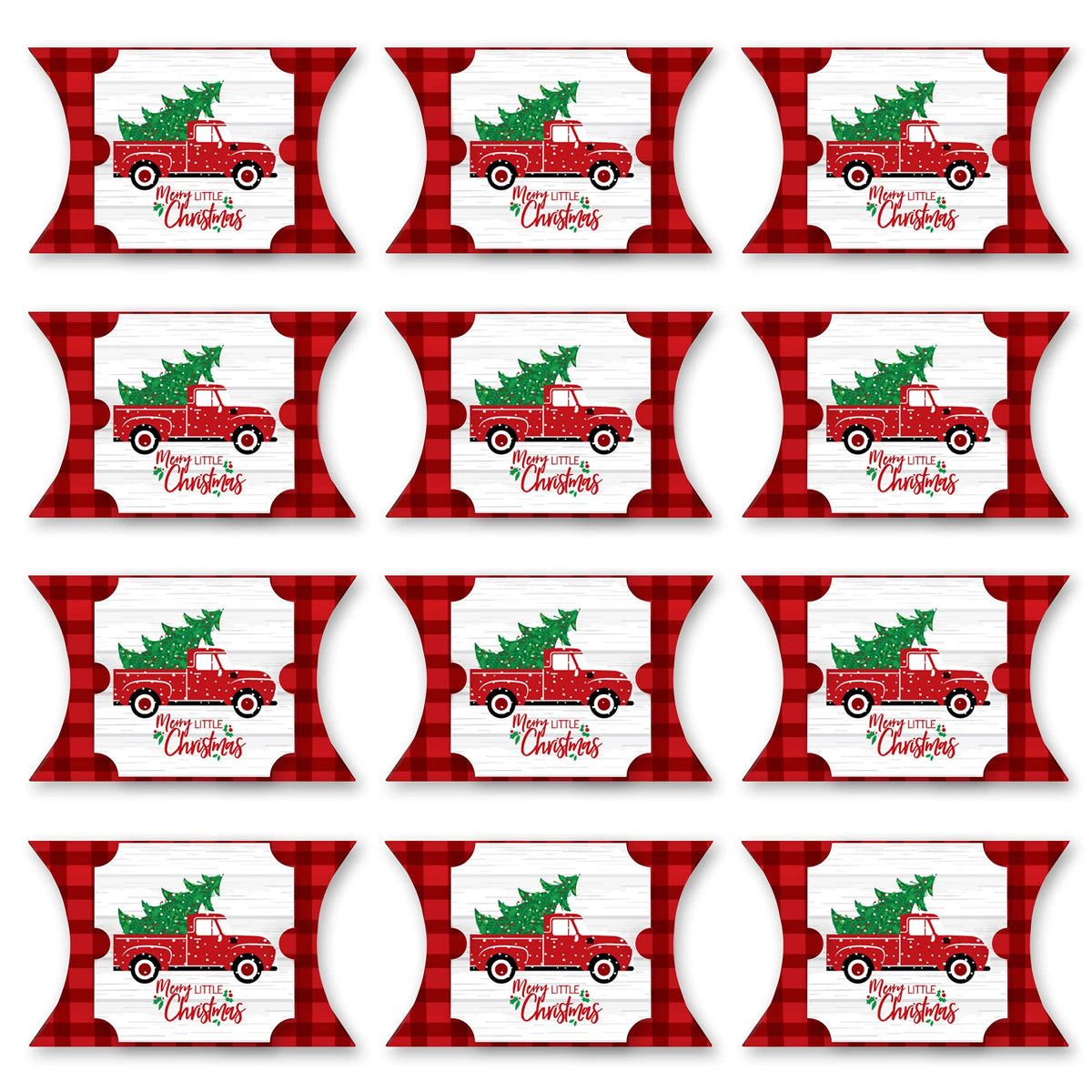 Big Dot Of Happiness Merry Little Christmas Tree - Favor Gift Boxes - Red Truck Christmas Party Large Pillow Boxes - Set Of 12