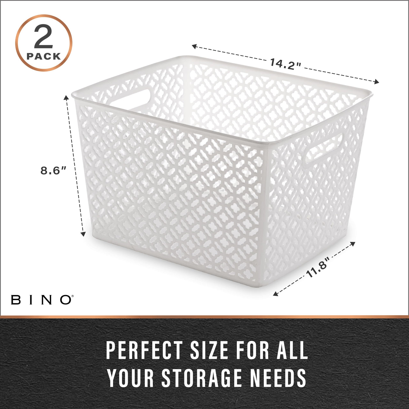 Bino L Plastic Storage Baskets, Xlarge - White L The Blossom Collection L Multi-Use Organizer Bin L Built-In Handles L Plastic W