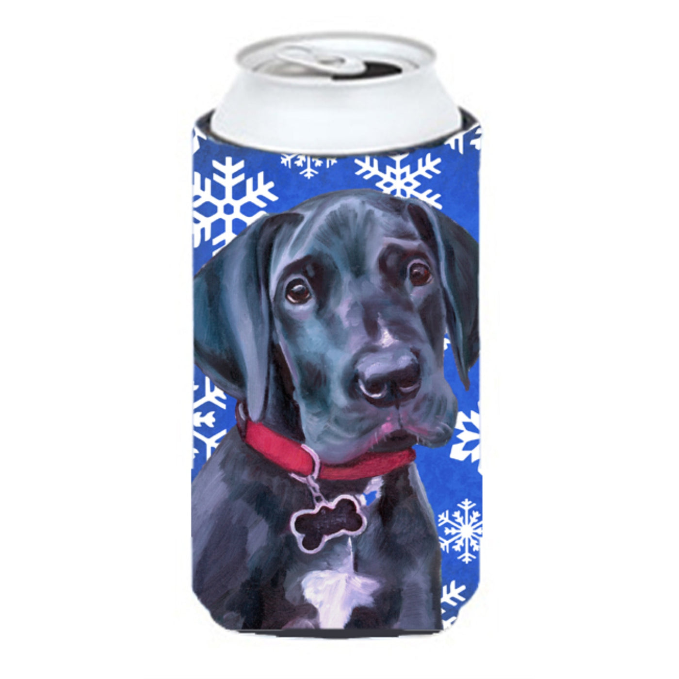 Black Great Dane Puppy Winter Snowflakes Holiday Tall Boy Beverage Insulator Hugger Lh9586Tbc