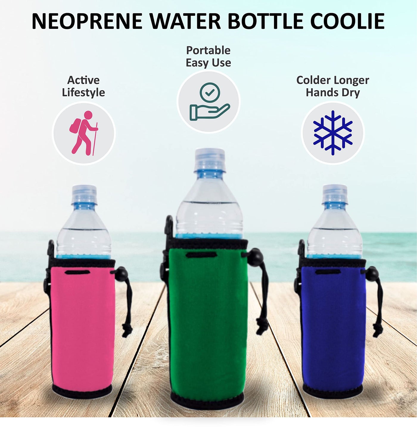 • Q: What size water bottles does this coolie fit? A: This coolie fits most 16 ounce and 17 ounce plastic disposable water bottles.