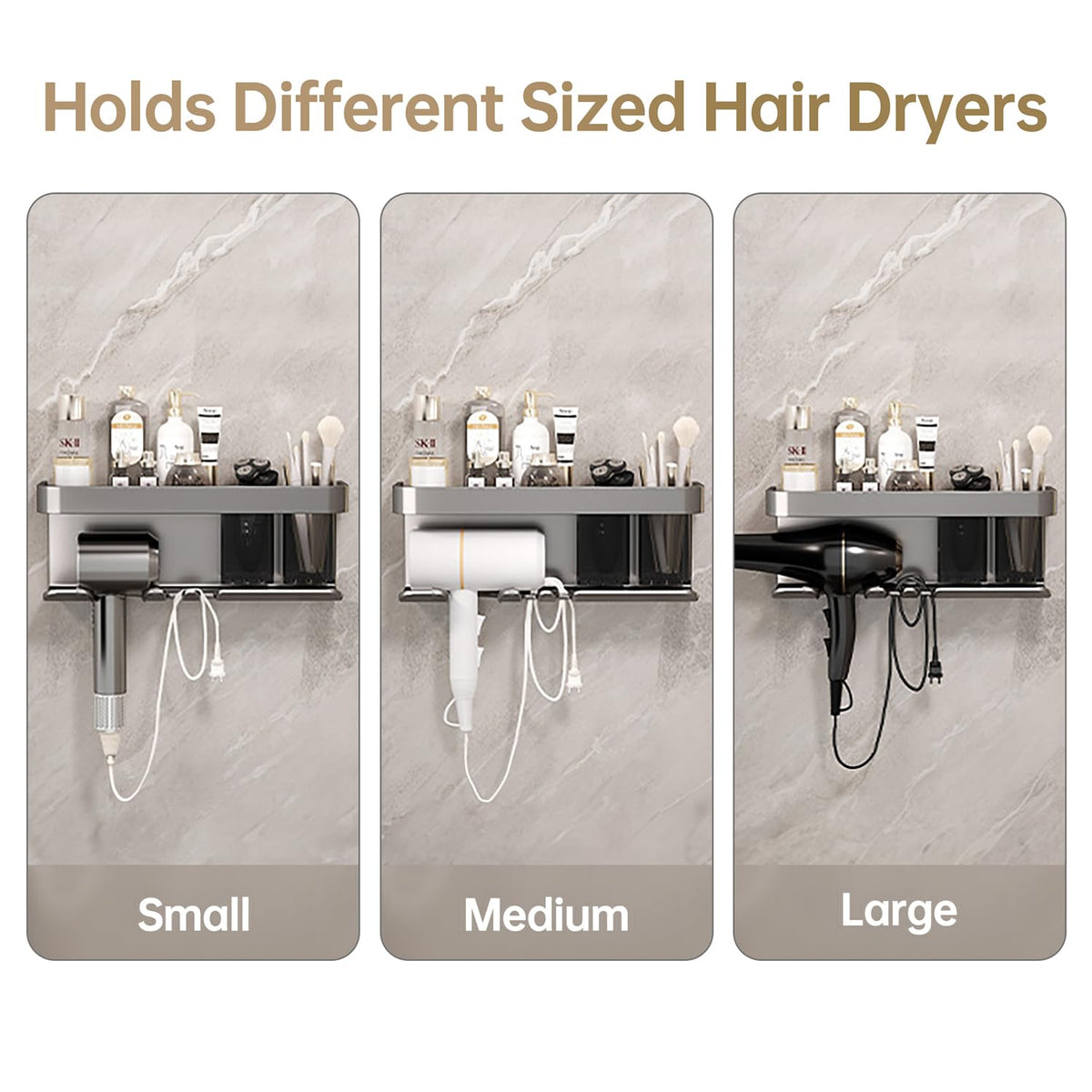 Boomersun Hair Dryer Holder, Blow Dryer Organizer, Hair Dryer Holder Wall Mounted With Shelf For Bathroom, Salon, Bedroom Organi