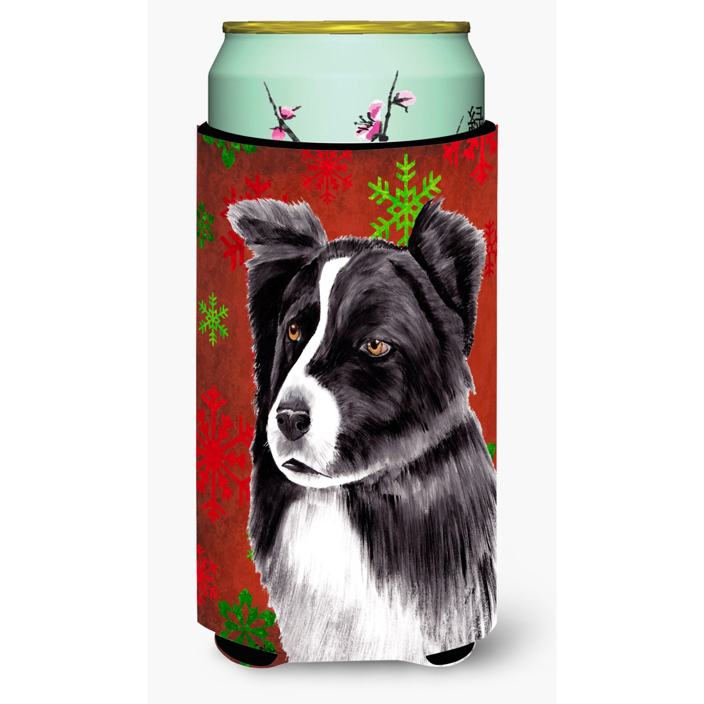 Border Collie Snowflakes Holiday Christmas Tall Boy Beverage Insulator Beverage Insulator Hugger