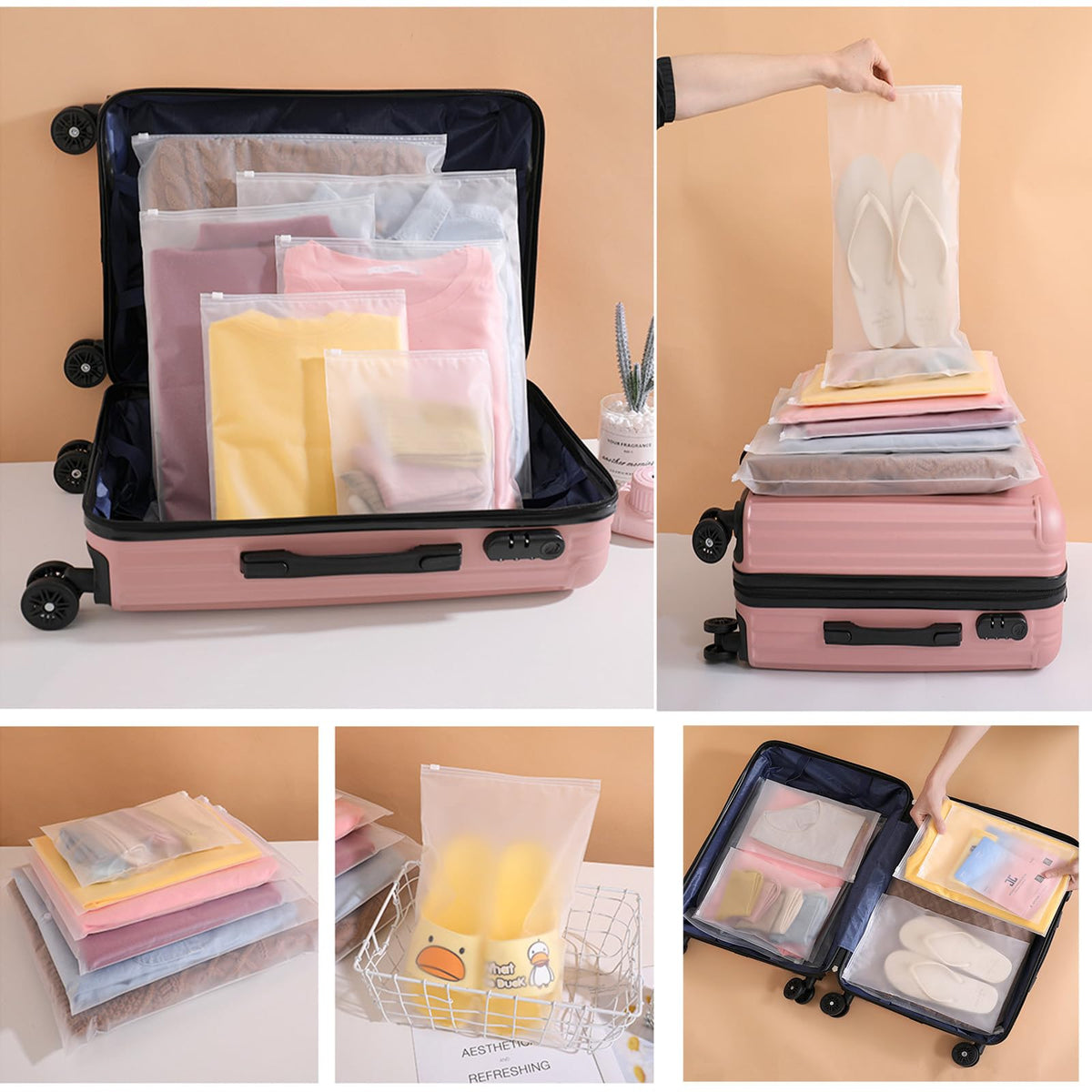 - Q: Can these bags be used for travel? A: Absolutely! These self-sealing zipper bags are ideal for travel as they securely store clothing, keeping them organized and protected from dust and moisture.