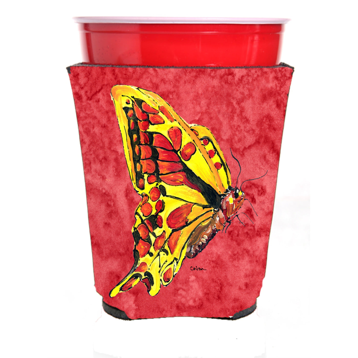 Butterfly on Red Red Solo Cup Beverage Insulator Hugger