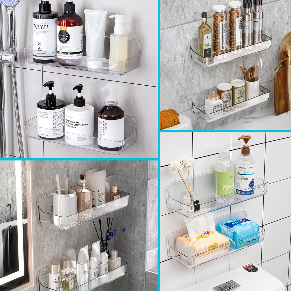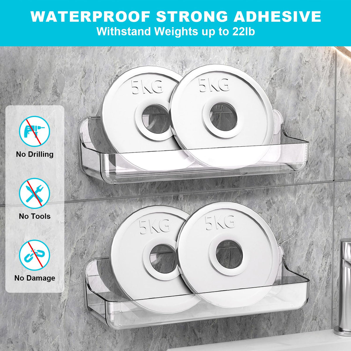 Cgbe 2-Pack Acrylic Shower Shelves, Large Capacity Adhesive Shower Shelf, No Drilling Adhesive Bathroom Shelf With Drain Holes,C