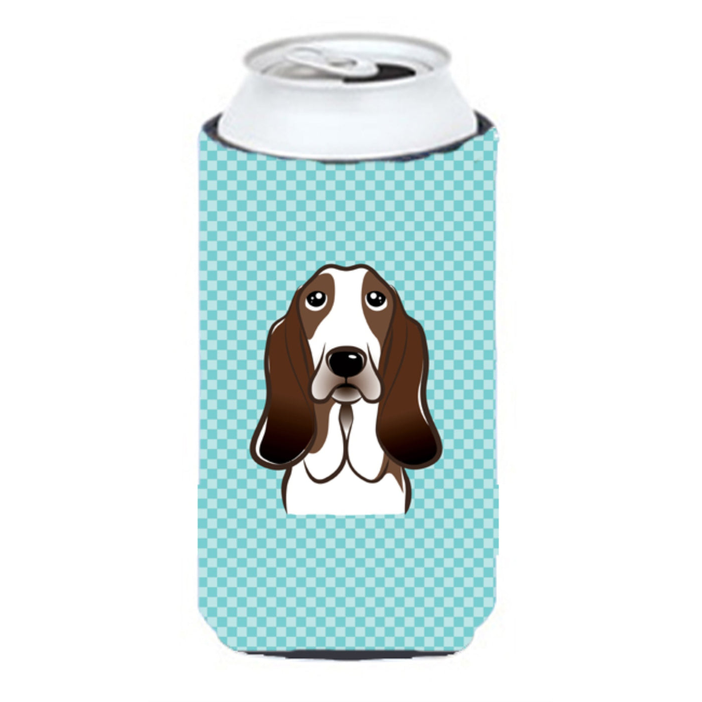 Checkerboard Blue Basset Hound Tall Boy Beverage Insulator Hugger BB1181TBC