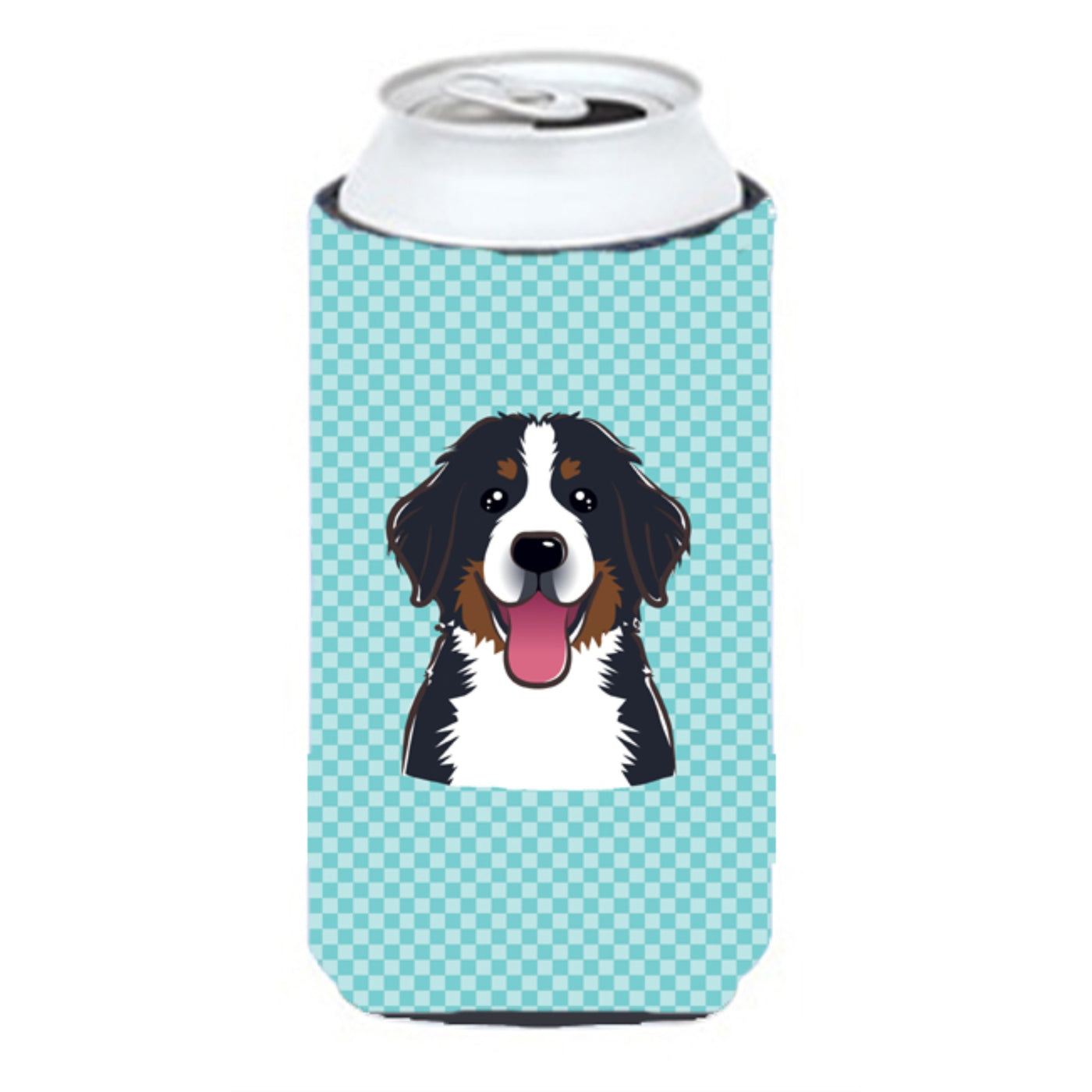 Checkerboard Blue Bernese Mountain Dog Tall Boy Beverage Insulator Hugger BB1175TBC