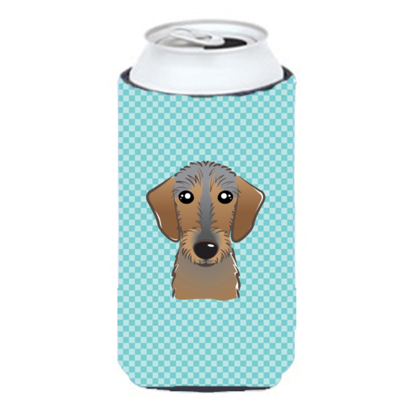 Checkerboard Blue Wirehaired Dachshund Tall Boy Beverage Insulator Hugger BB1171TBC