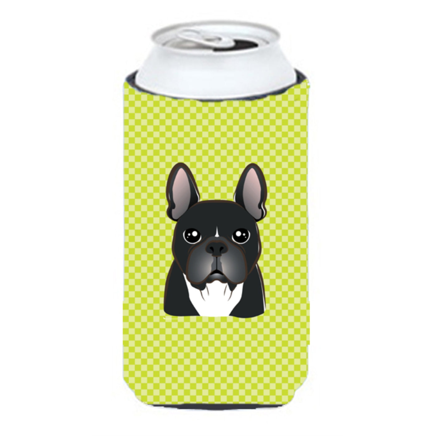 Checkerboard Lime Green French Bulldog Tall Boy Beverage Insulator Hugger BB1289TBC