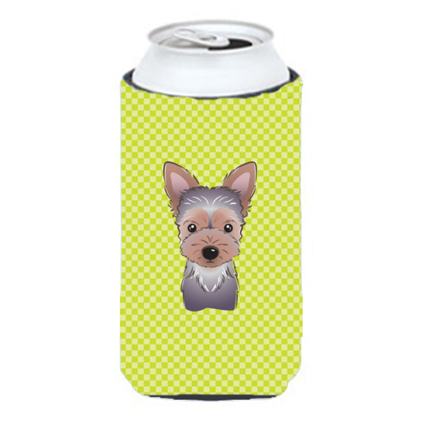 Checkerboard Lime Green Yorkie Puppy Tall Boy Beverage Insulator Hugger BB1294TBC