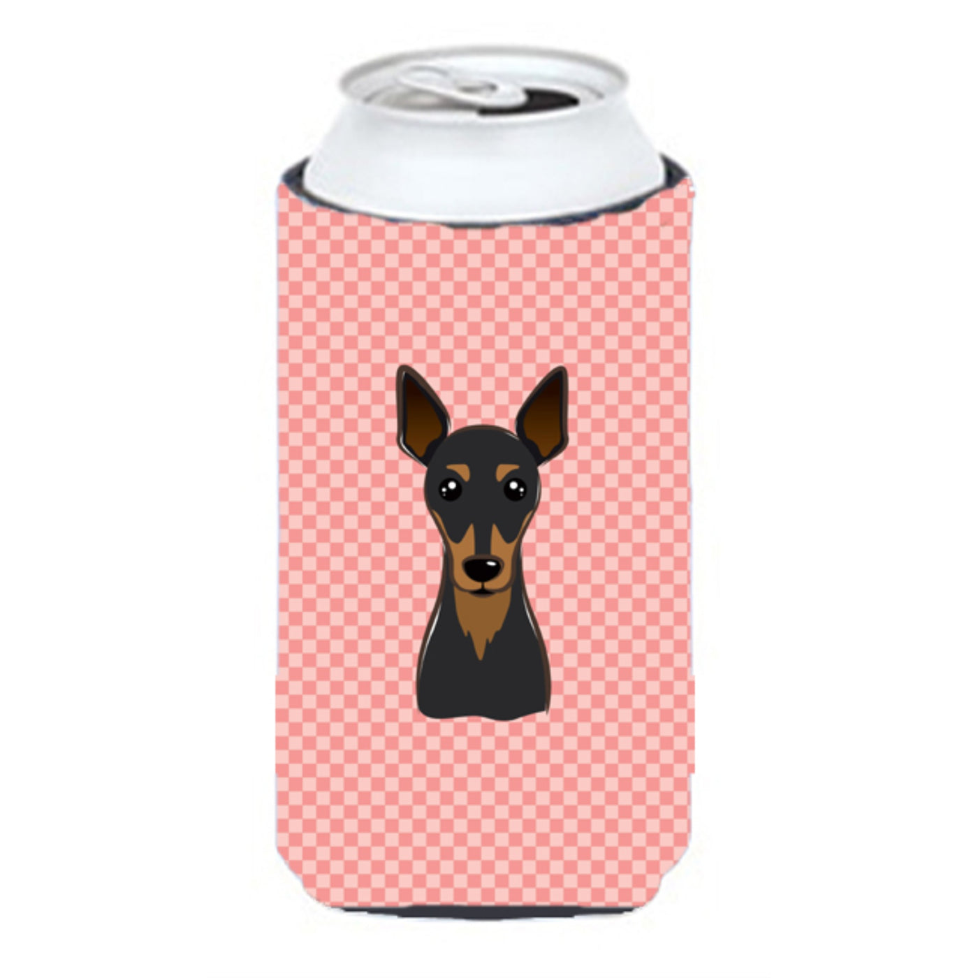 Checkerboard Pink Min Pin Tall Boy Beverage Insulator Hugger BB1240TBC