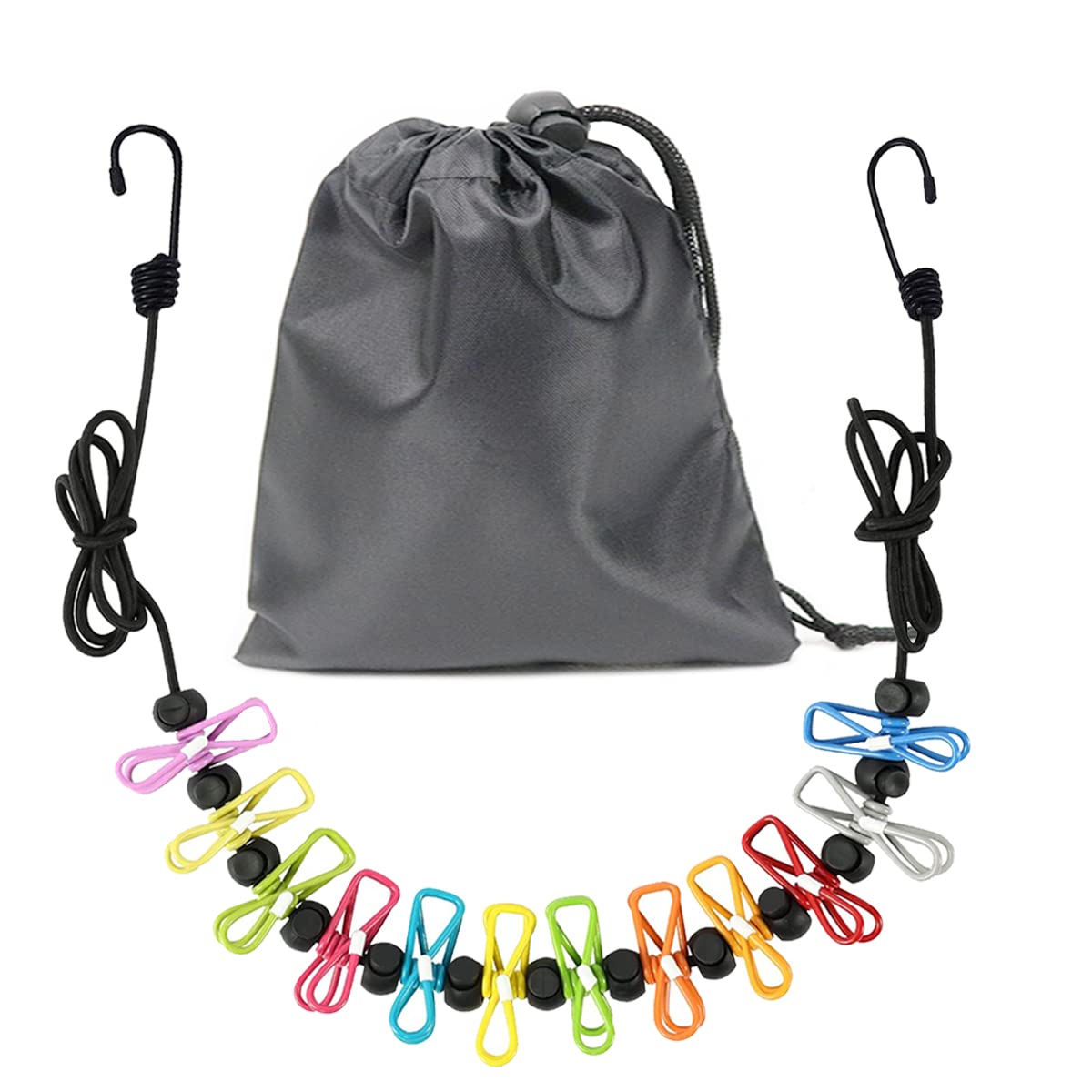 • Q: How many clothes clips are included with the clothesline? A: The clothesline comes with 12 durable clothes clips, which help securely hold your items while they dry without damaging the fabric.