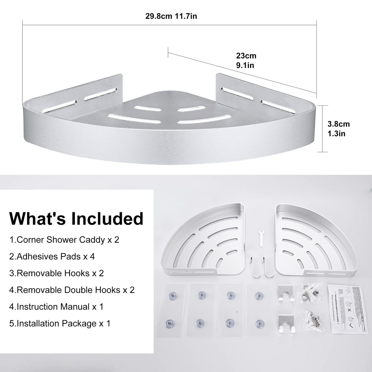 - Q: How many caddies are included in the package? A: The package includes two corner shower caddies, providing ample storage space for your bathroom essentials.