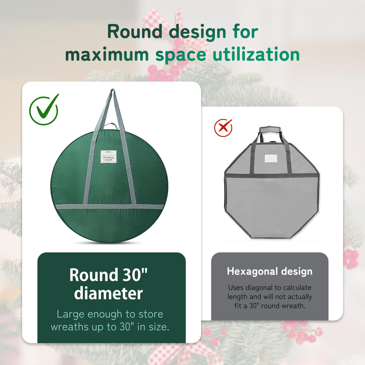 - Q: Can I store other items in this bag besides wreaths? A: Yes, the removable inner pocket can be used to store holiday ornaments or everyday items.