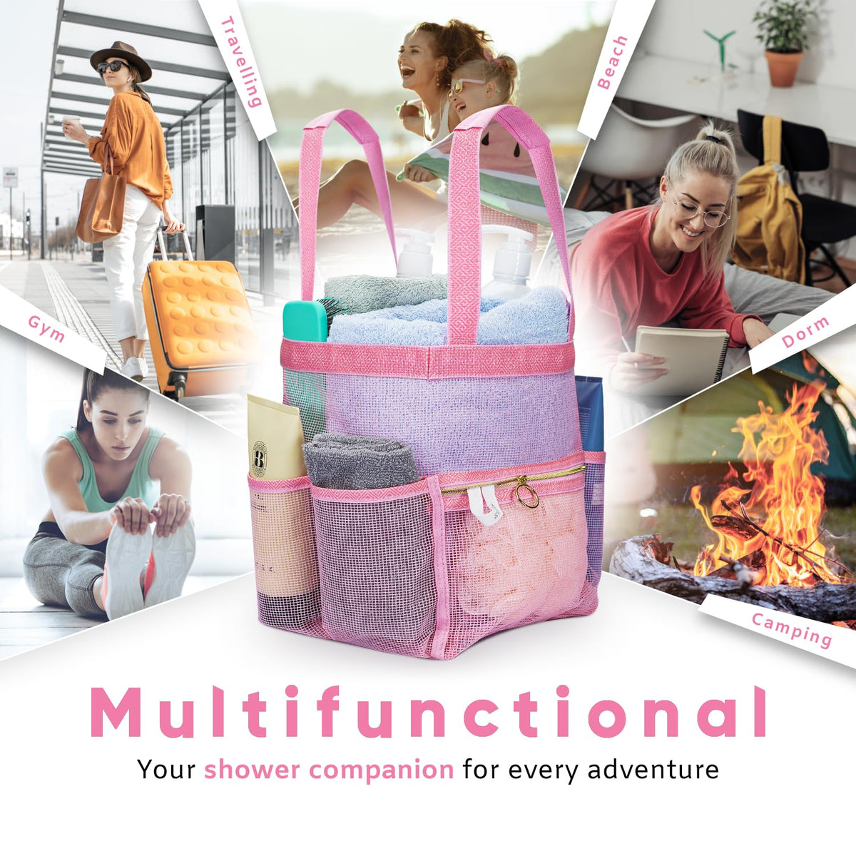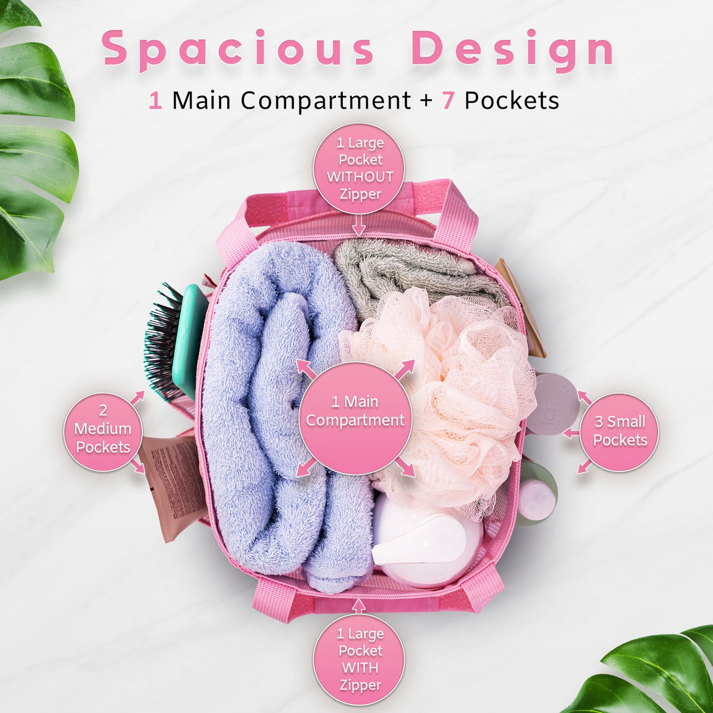 Dv Lifestyle Mesh Shower Caddy Dorm, 7 Pockets & 1 With Zipper, Shower Tote With Padded Handles, Travel Shower Caddy Portable, S