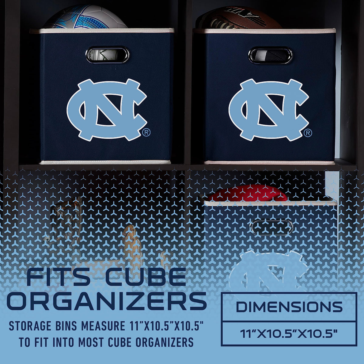 • Q: What colors are available for the storage bin? A: The storage bin features the official colors of the NCAA UNC Tarheels team, which are primarily Carolina blue and white.