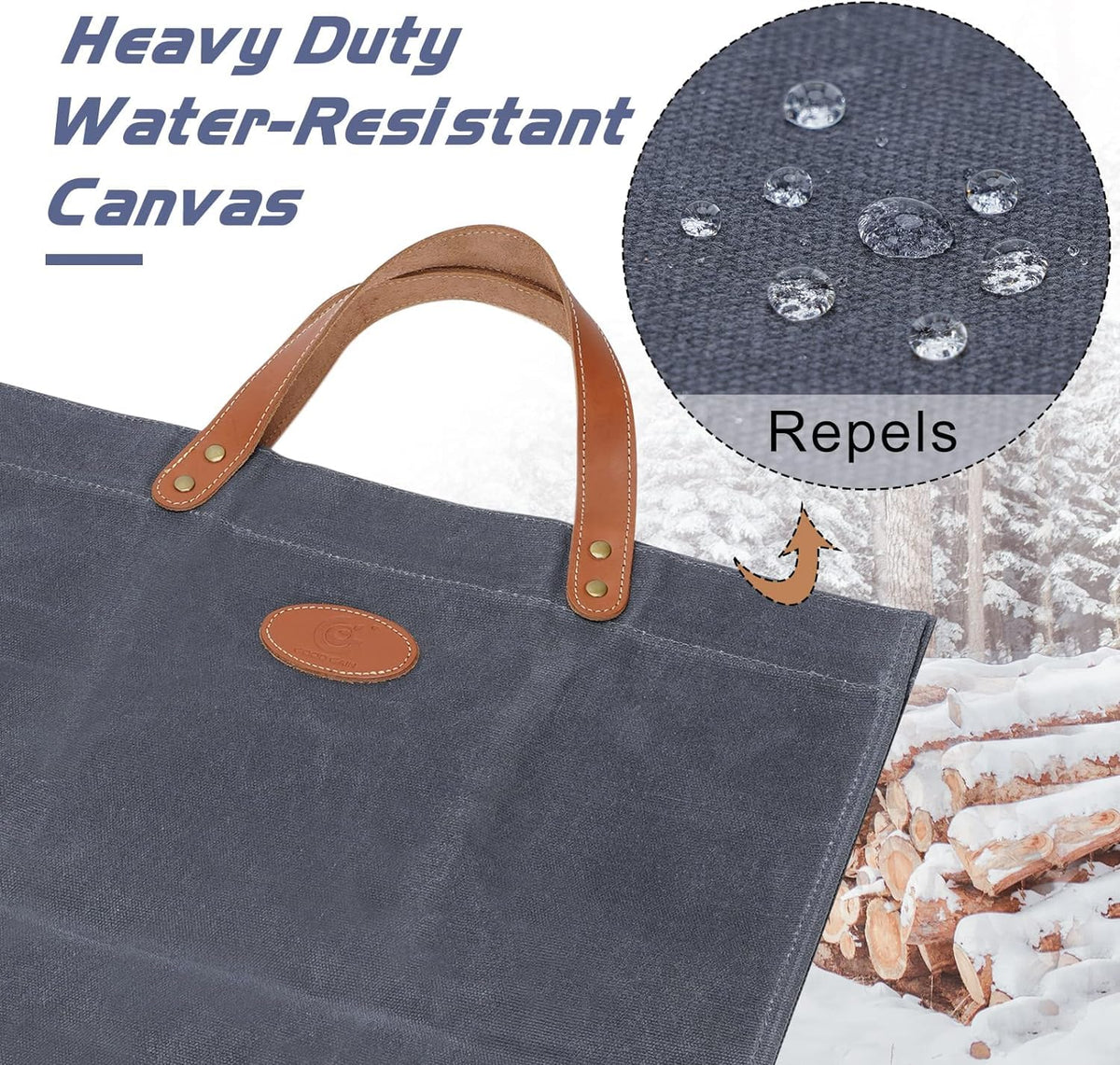 G Good Gain Firewood Carrier Waxed Canvas With Leather Handles, Wood Carrier For Firewood, 36X18.5 In Heavy Duty Firewood Storag