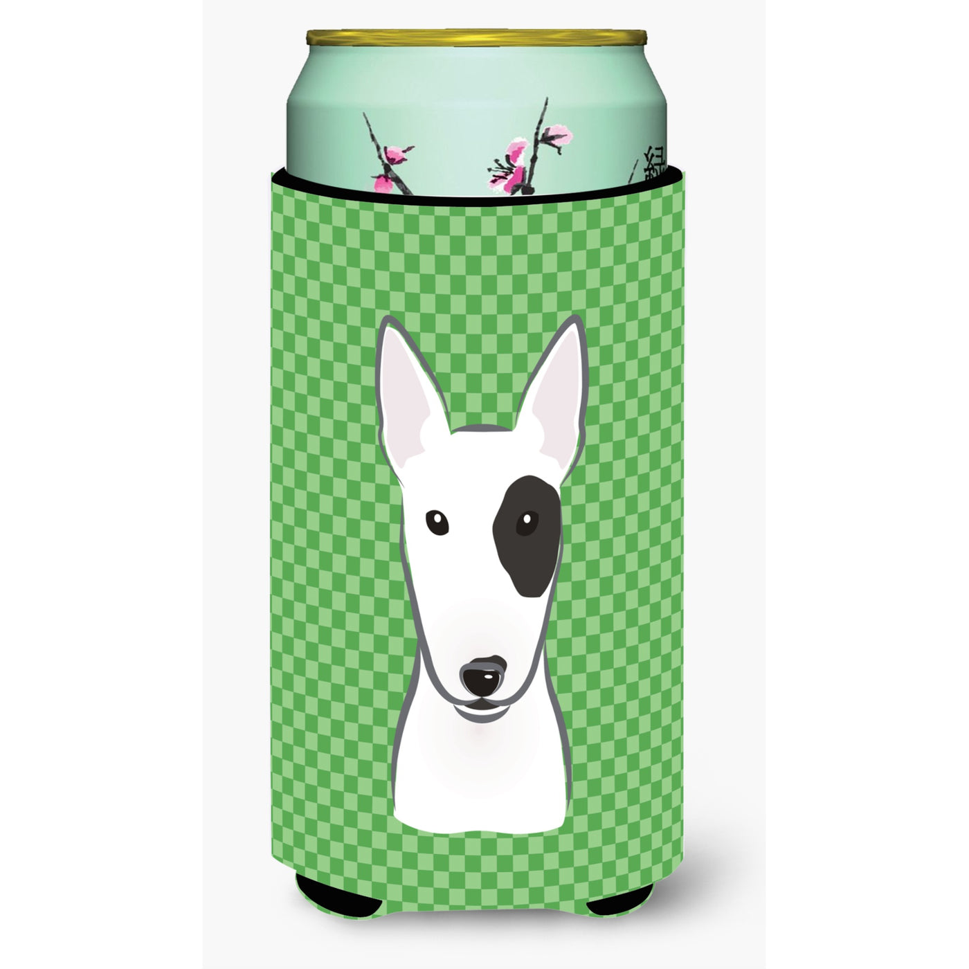 Green Checkered Bull Terrier Tall Boy Beverage Insulator Hugger BB1132TBC