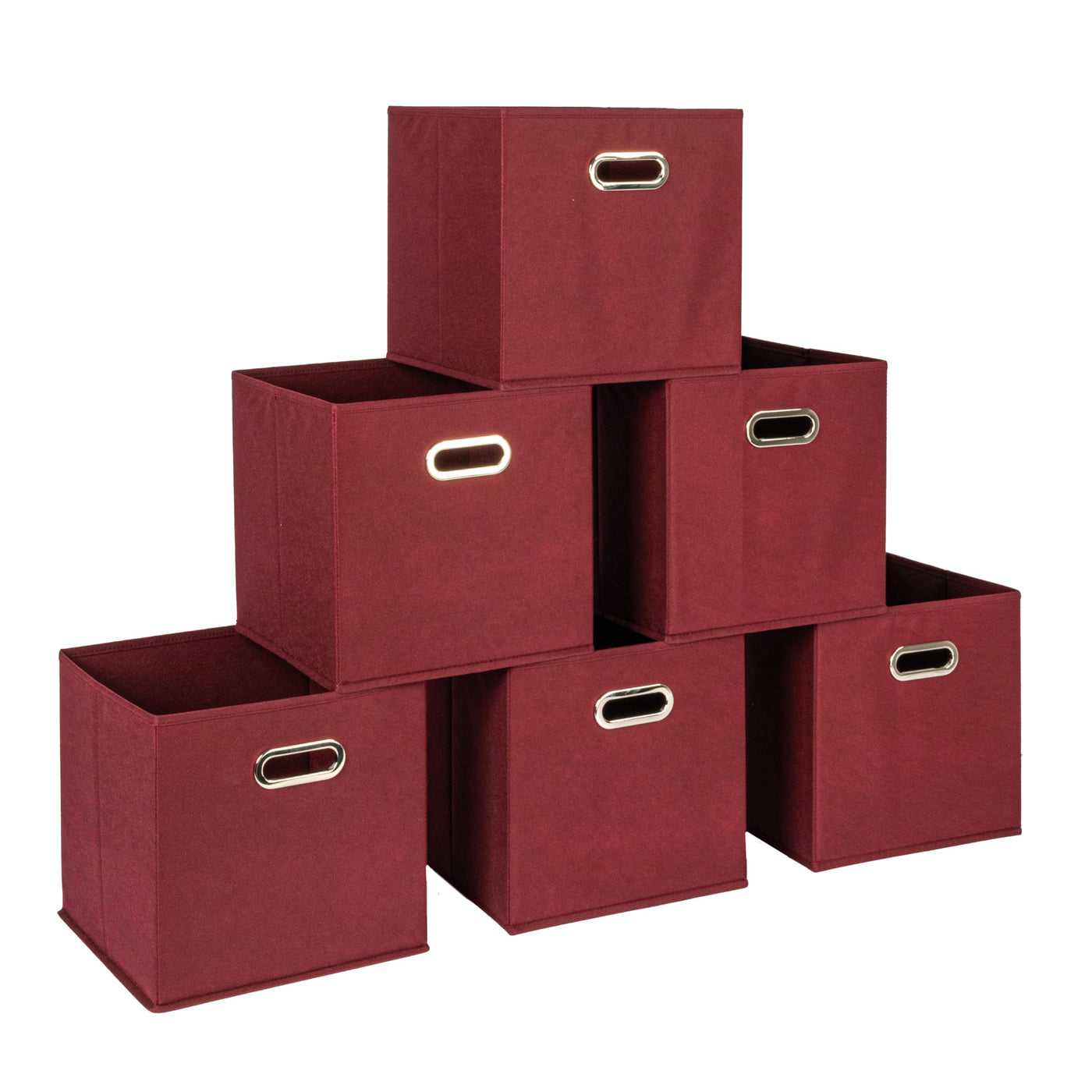 • Q: What color are the storage bins available in? A: These storage bins are available in a classic burgundy color, which adds a warm touch to any room.