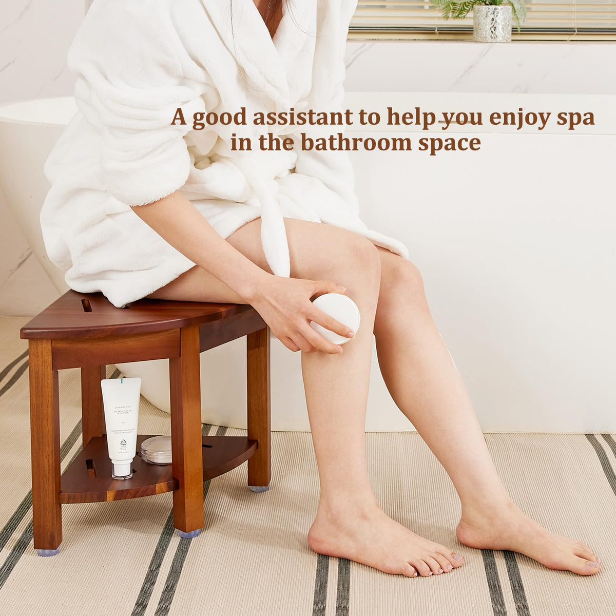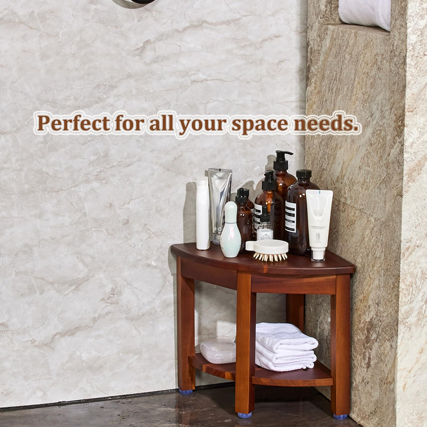 - Q: Does the bench have any storage features? A: Yes, the HouseJoy Corner Shower Bench includes a 2-tier storage shelf that can hold various bath items and is space-efficient.