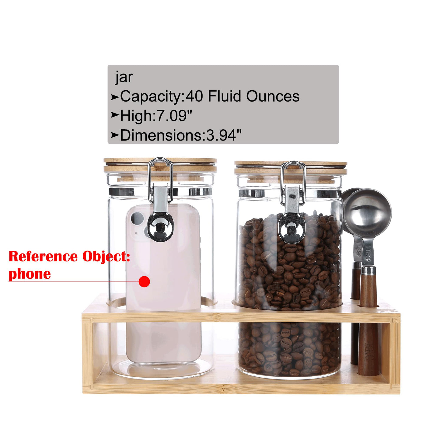 Kkc Glass Coffee And Sugar Containers With Airtight Hinged Lids,Sealed Glass Jar Canisters With Scoops For Ground Coffee,Beans,L
