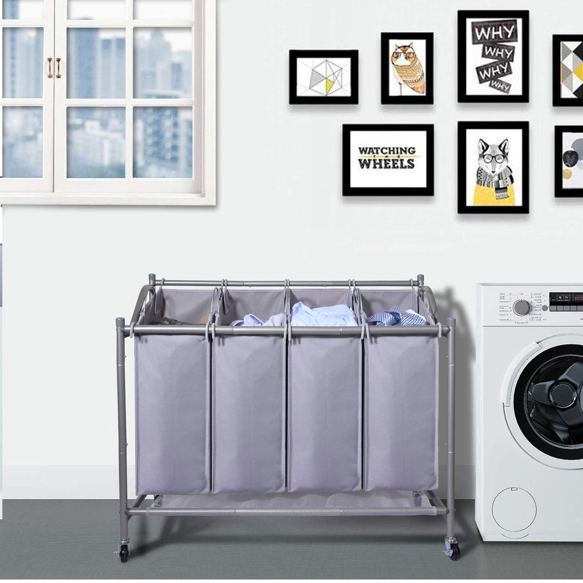 Laundry Sorter Cart 4-Bag Classics Rolling Laundry Hamper Sturdy Frame with 60KG Weight Capacity Gray