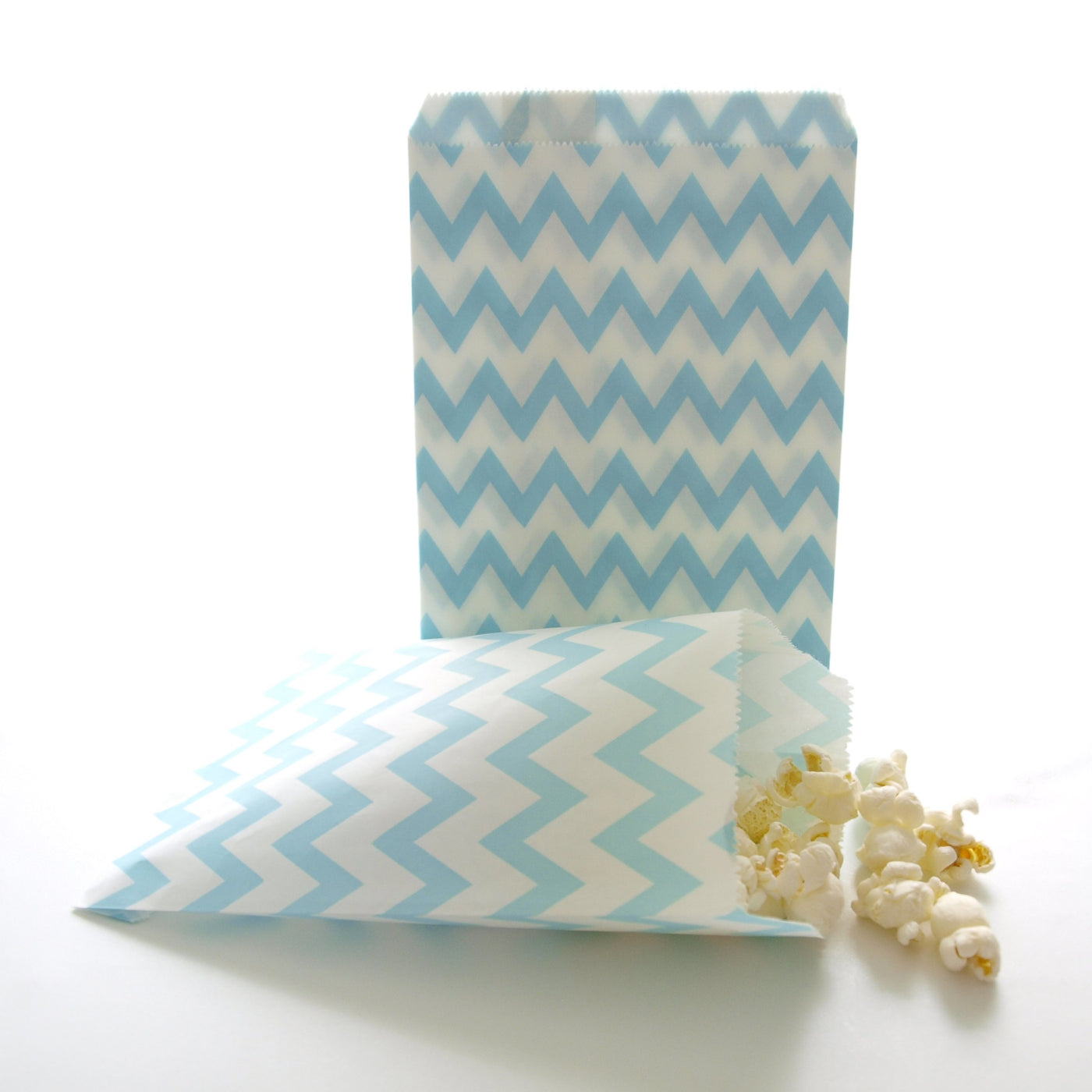 • Q: How many goodie bags come in a pack? A: Each pack contains 25 Light Blue Chevron Paper Goodie Bags.