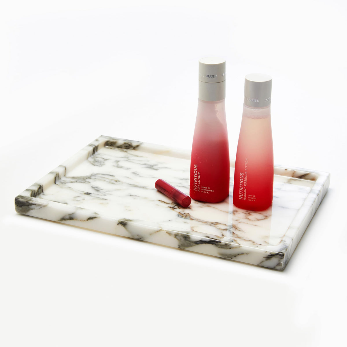 - Q: What weight should I expect from the tray? A: The LYS&LYX Natural Marble Vanity Tray weighs approximately 1600 grams.
