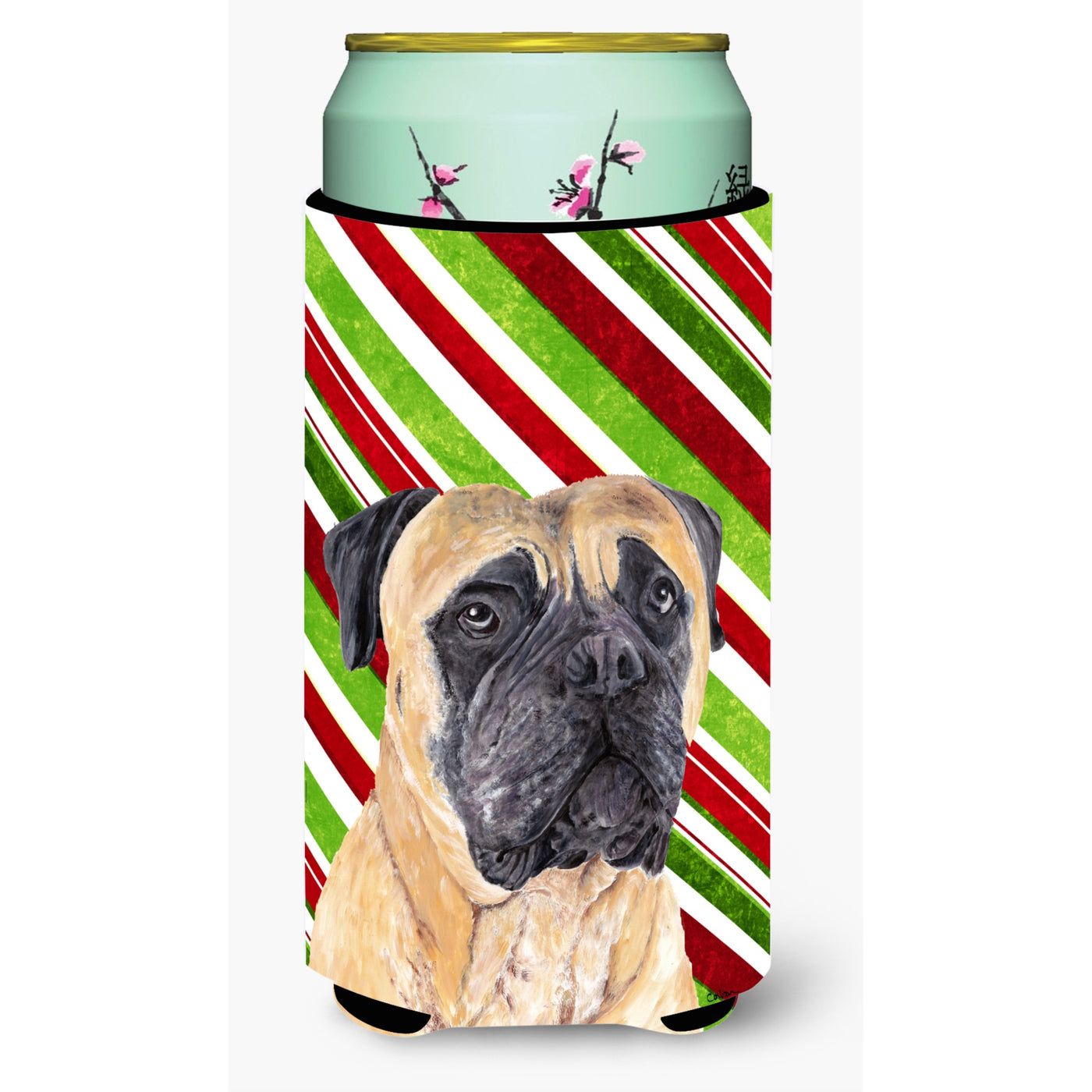 Mastiff Candy Cane Holiday Christmas Tall Boy Beverage Insulator Beverage Insulator Hugger