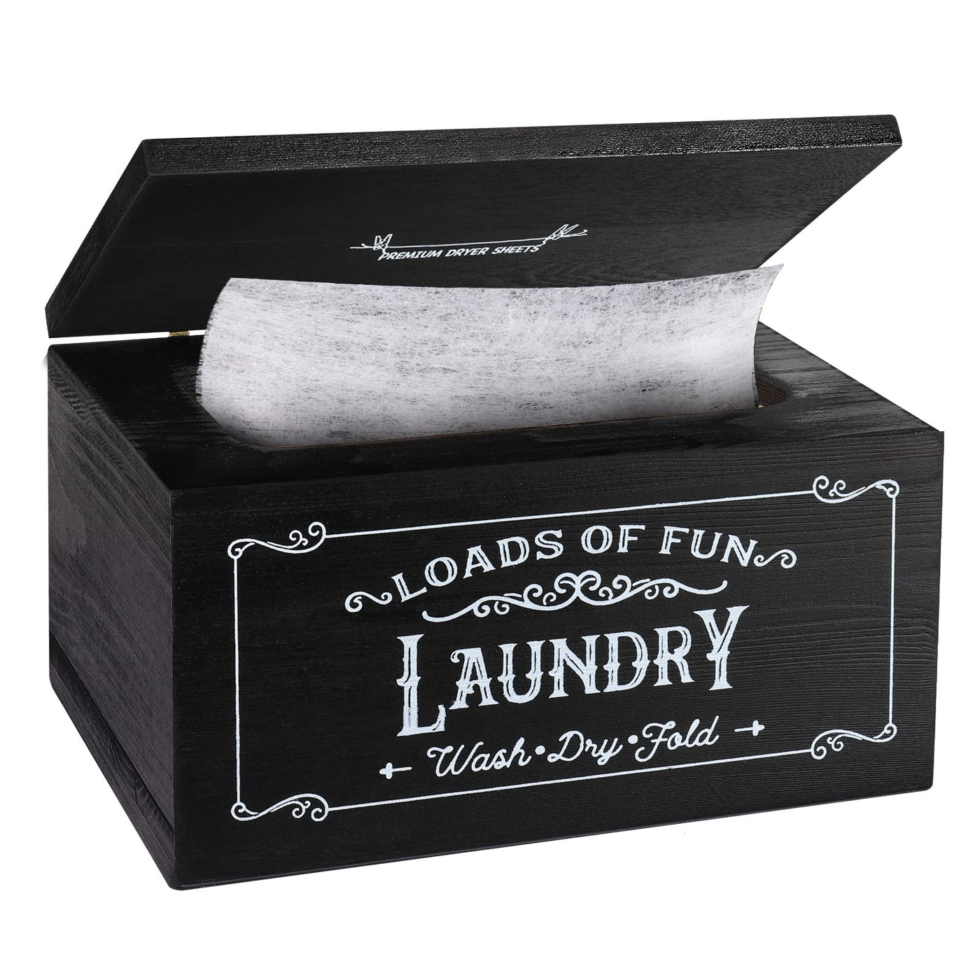 • Q: What makes this dryer sheet holder suitable for different laundry room styles? A: Its rustic design and modern color scheme allow it to complement various laundry room decors, making it versatile for different styles.