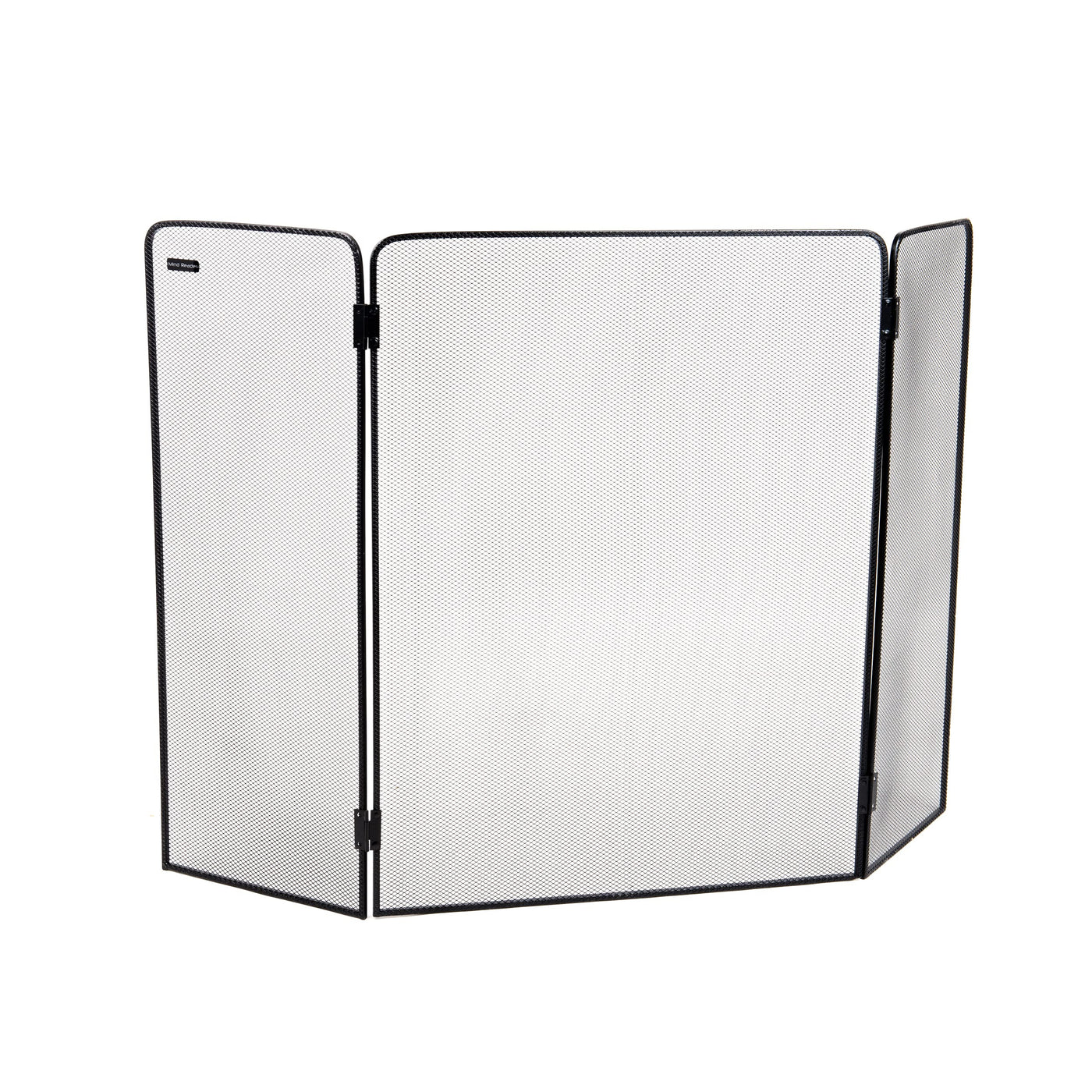 Mind Reader 3-Panel Fireplace Screen, Folding, Indoor Outdoor, Stand Alone, Metal Mesh, 26.25''L X 0.25''W X 24''H, Black