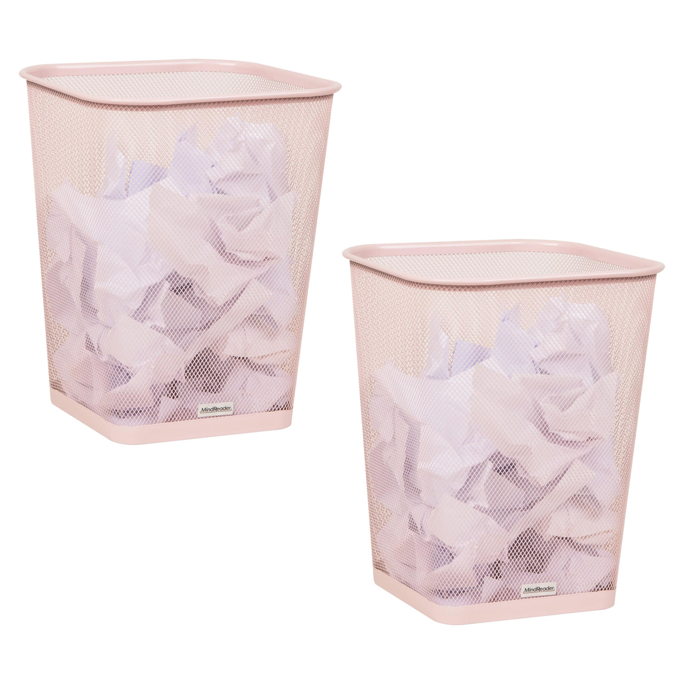 Mind Reader Mesh Trash Can, Square Wastebasket for Office or Home, 5 Gallon Capacity, Metal Mesh, Set of 2, Pink
