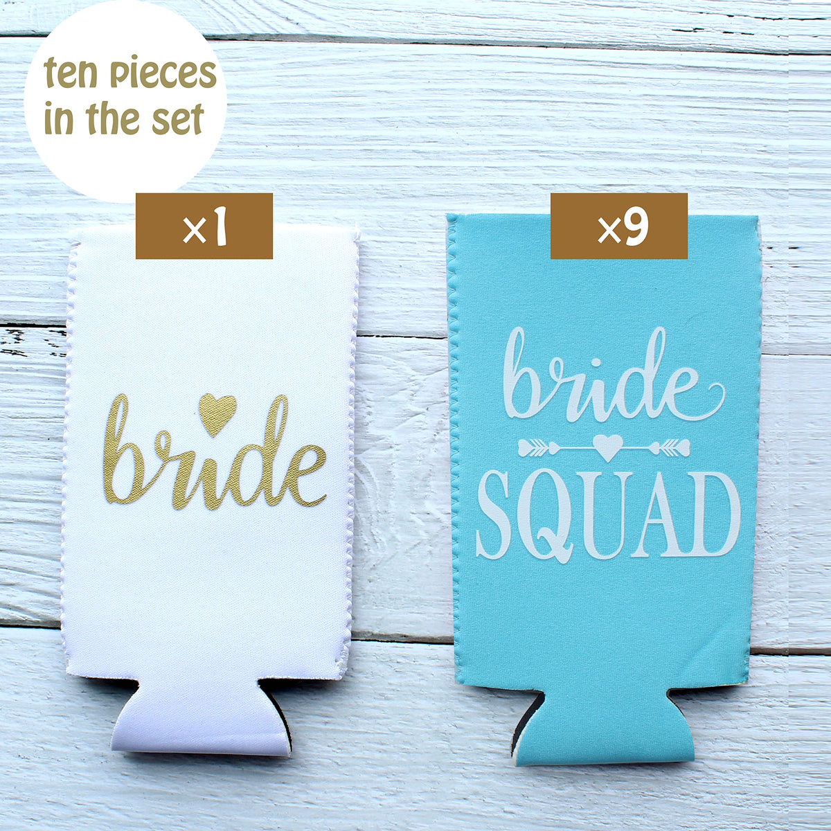 Partygifts&Beyond 10Packs Bachelorette Party Decorations Slim Can Cooler Bridesmaid Gifts Can Cooler Bride Squad Can Sleeves(Lak