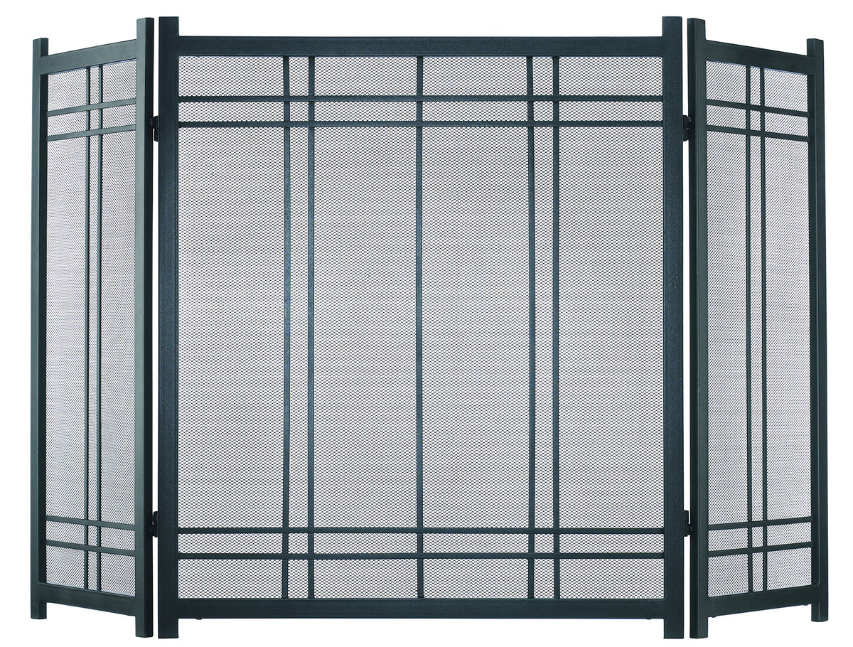 • Q: What style does the Pleasant Hearth Preston Fireplace Screen have? A: The screen features an arts & crafts style with clean lines and a vintage iron finish.