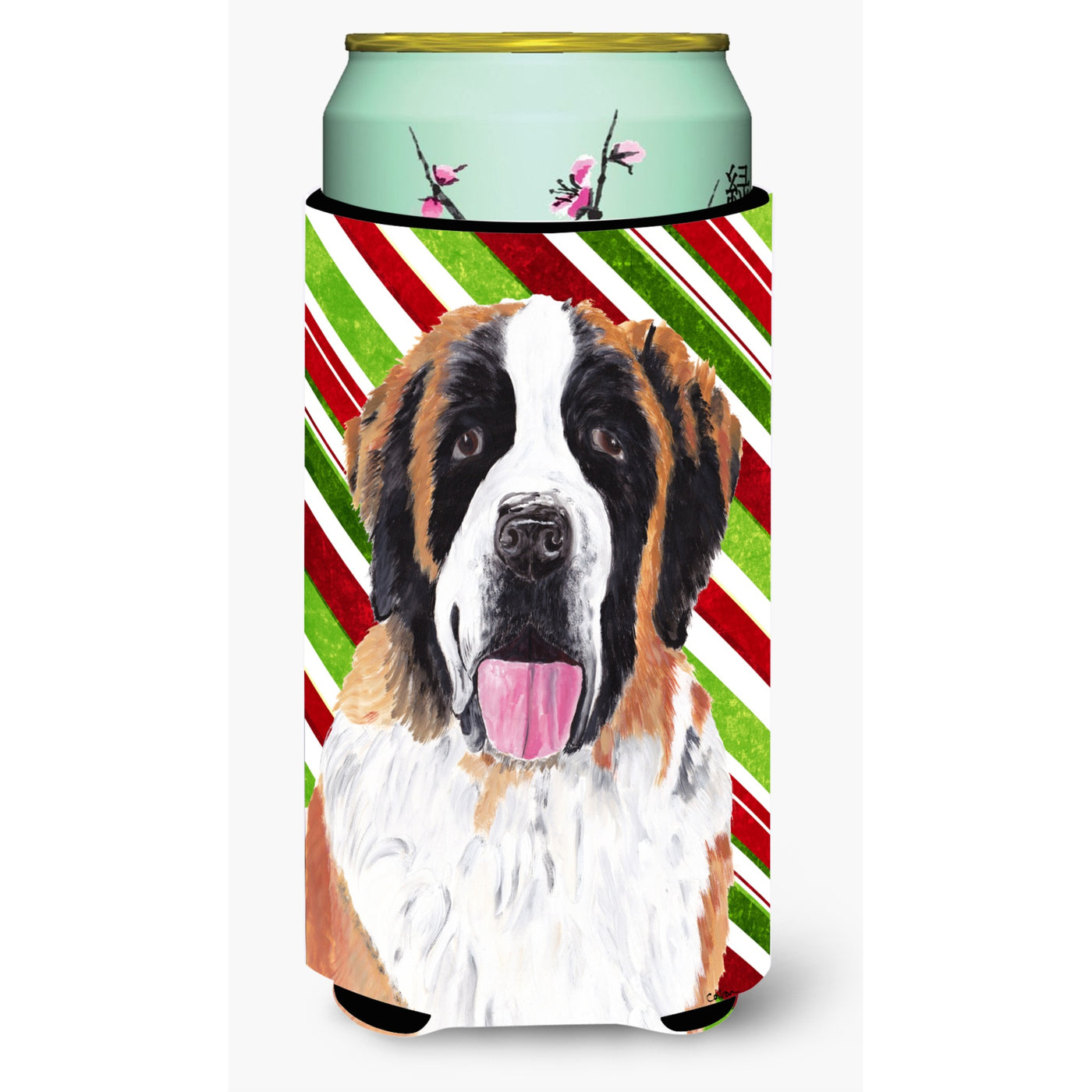 Saint Bernard Candy Cane Holiday Christmas Tall Boy Beverage Insulator Beverage Insulator Hugger