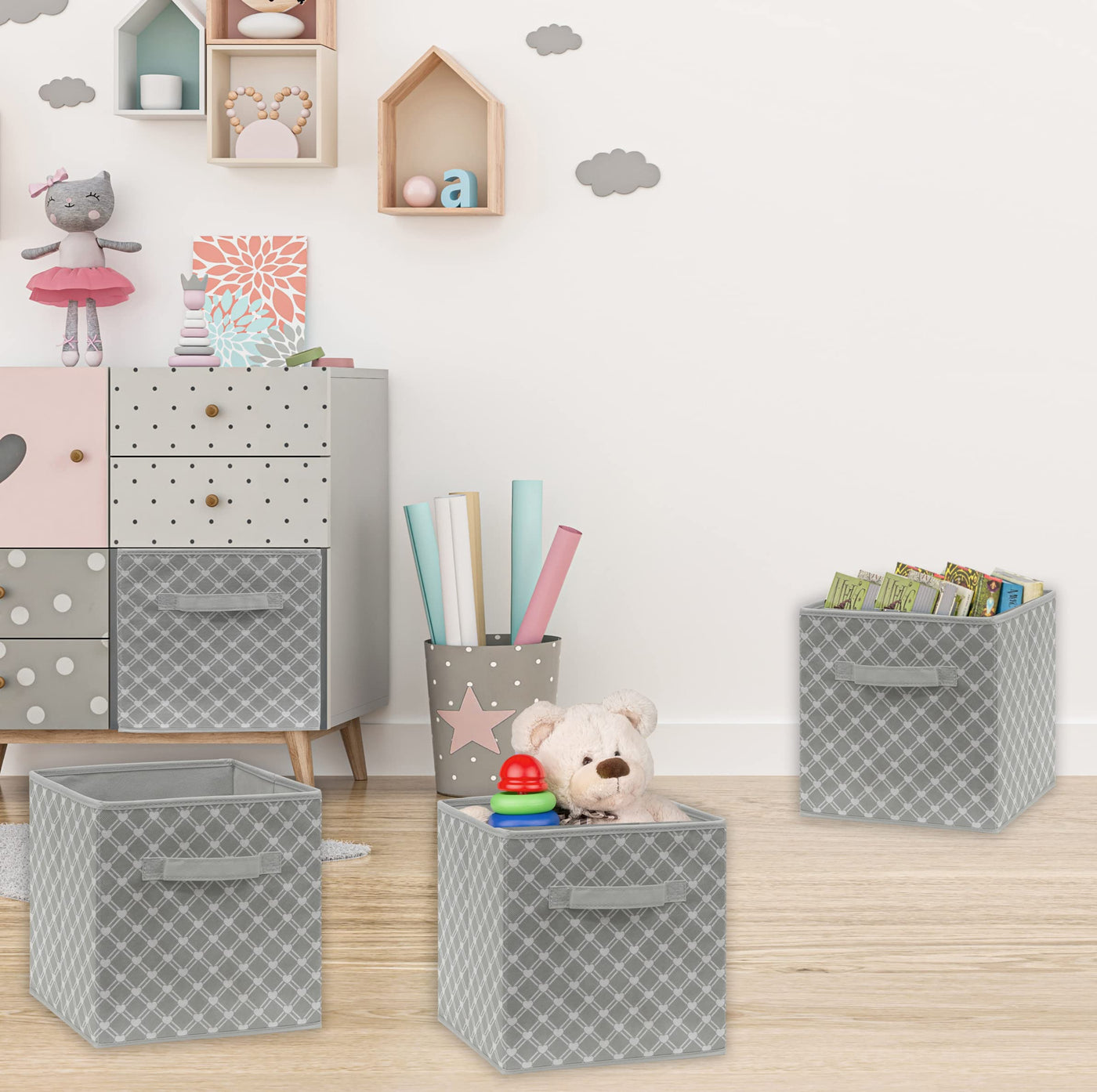 • Q: Do the bins come with handles for easy access? A: Yes, each bin has a fabric drawer handle that allows for easy access.