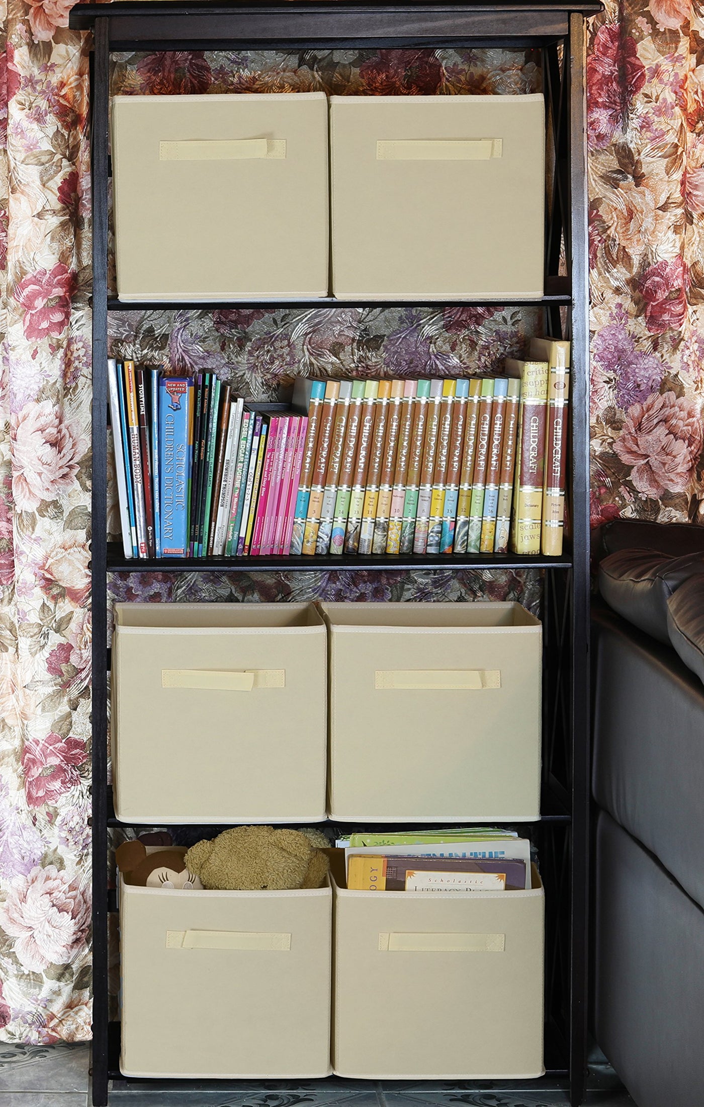 Simple Houseware Foldable Cloth Storage Cube Basket Bins Organizer, Beige - 6 Pack