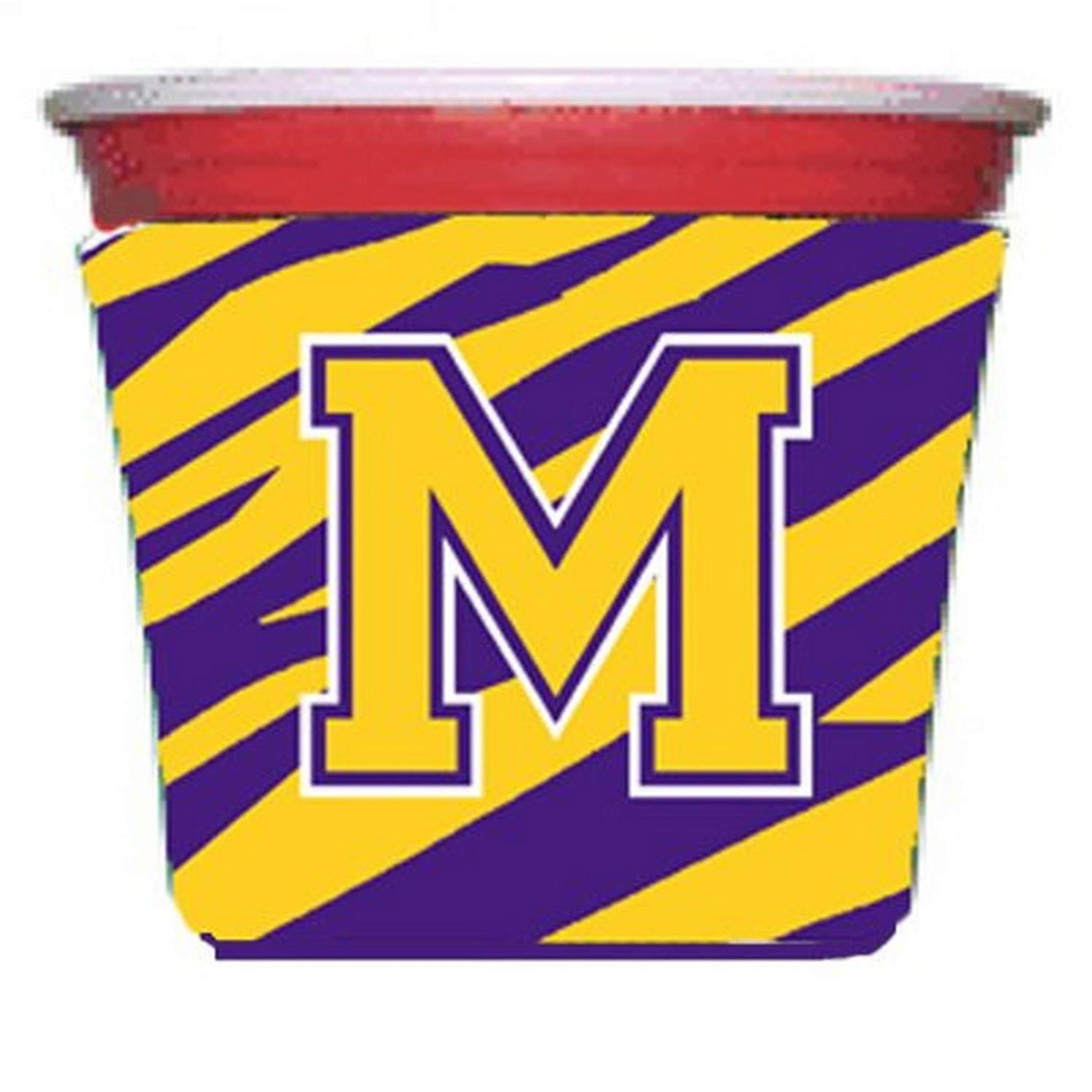 Tiger Stripe - Purple Gold Letter M Monogram Initial Red Solo Cup Beverage Insulator Hugger