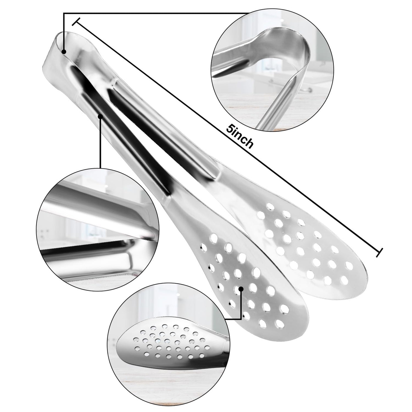 • Q: How do the tongs enhance functionality? A: The innovative design includes a filter hole that adds to the convenience of using the mini tongs.