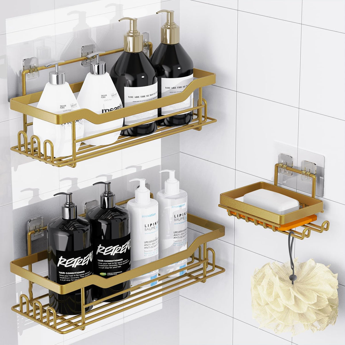Bathdesign Shower Caddy Shelves Organizer Rack, 3 Pack Shower Caddy With Soap Holder, Shower Shelves For Inside Shower, No Drill
