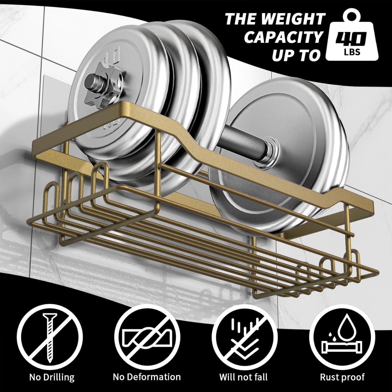 • Q: Is the adhesive strong enough to hold heavy items? A: Yes, the adhesive can bear up to 40 pounds, ensuring that your toiletries remain securely in place after proper installation.