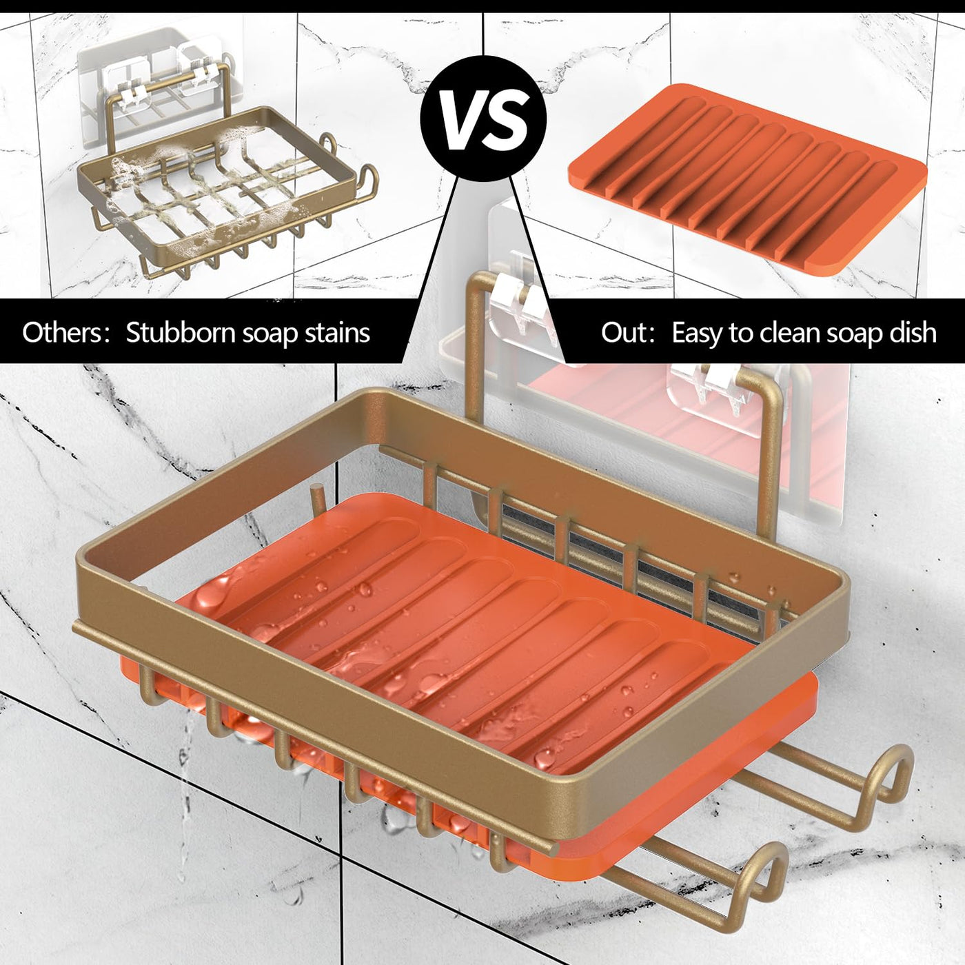 • Q: Does the soap dish help prevent soap stains? A: Yes, the included soap dish is designed with a drainage feature to keep soap residue from accumulating, thus helping to maintain a clean shower shelf.